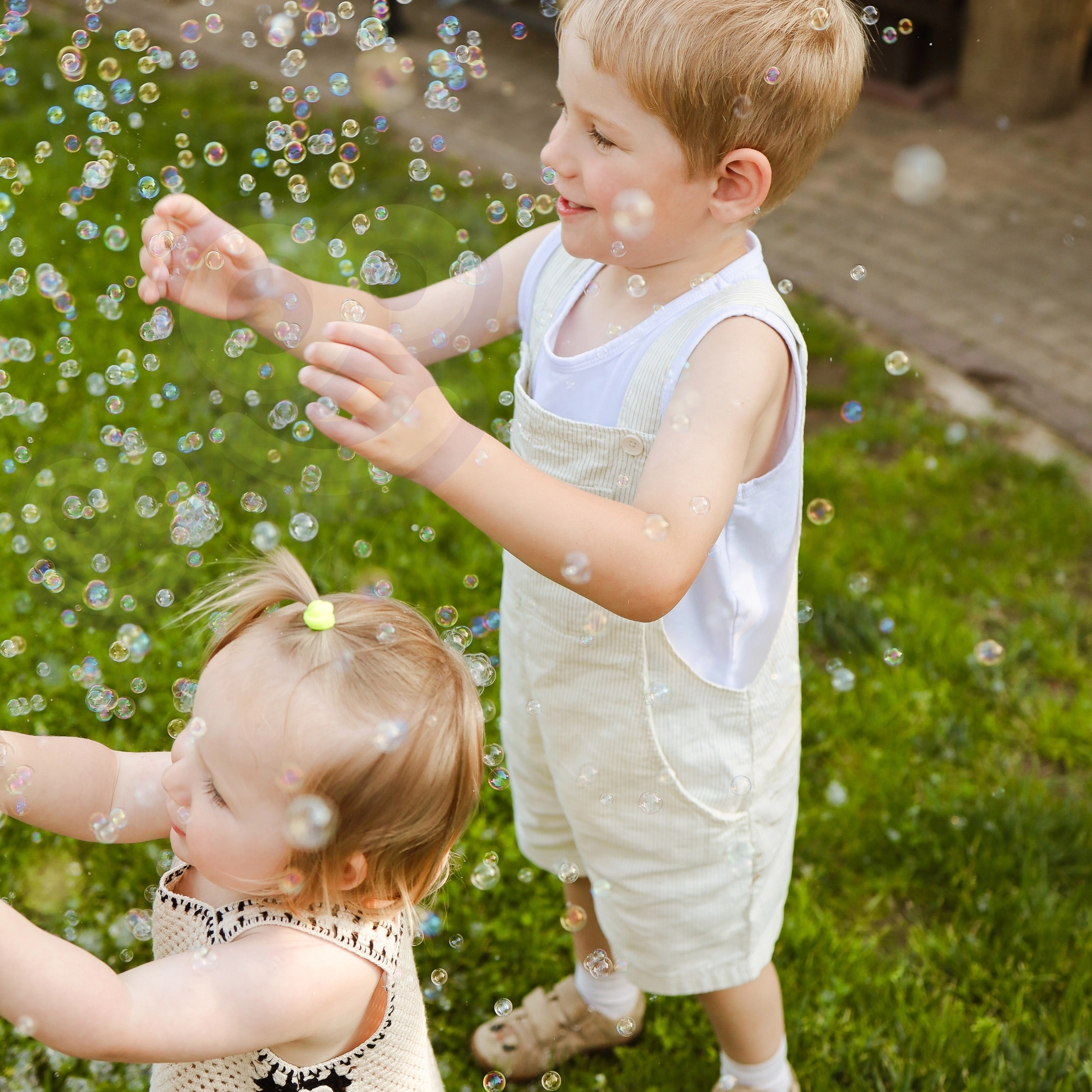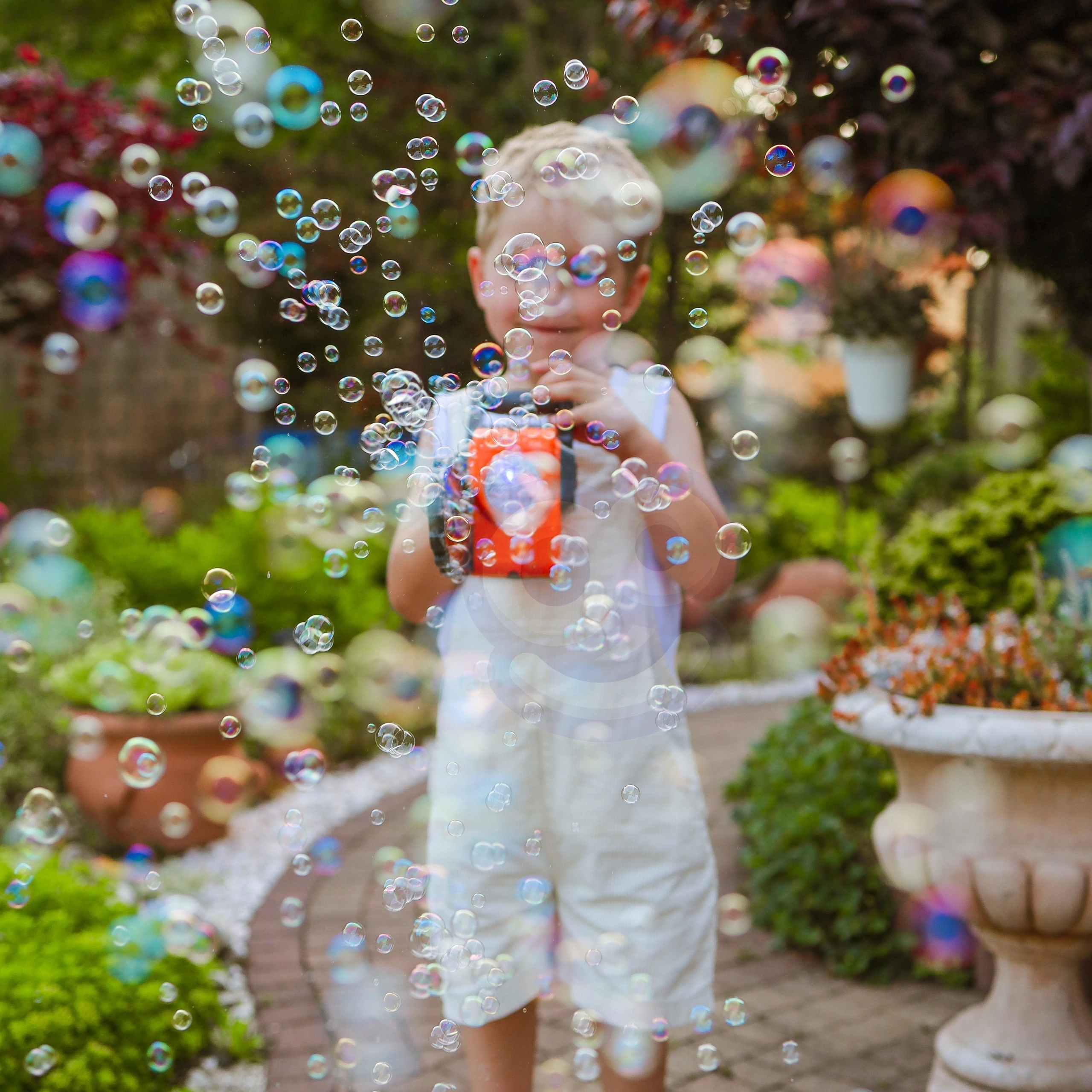 Sāciet burbuļu jautrību uzreiz. Divas rezerves pudelītes paildzina spēli bez biežas papildināšanas.