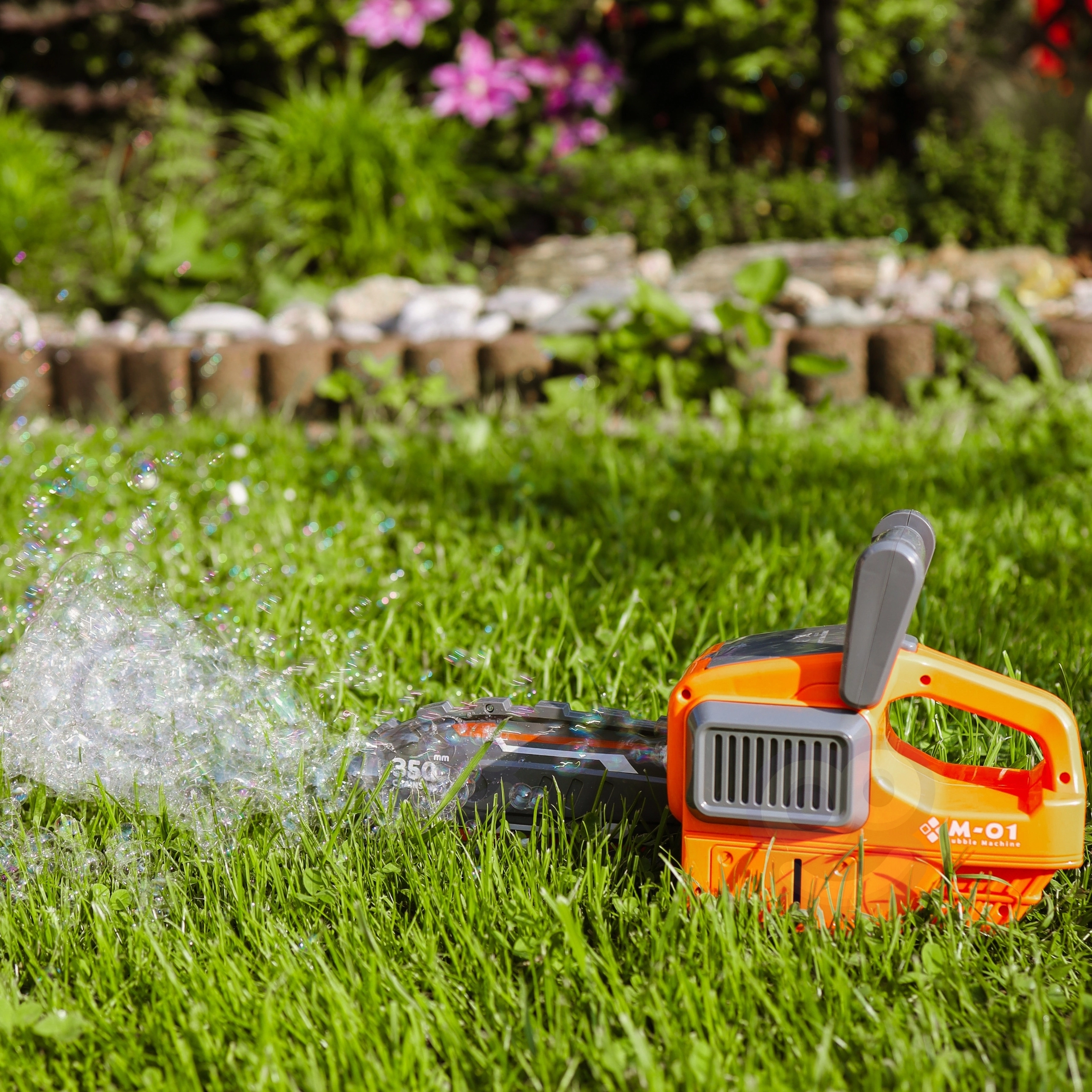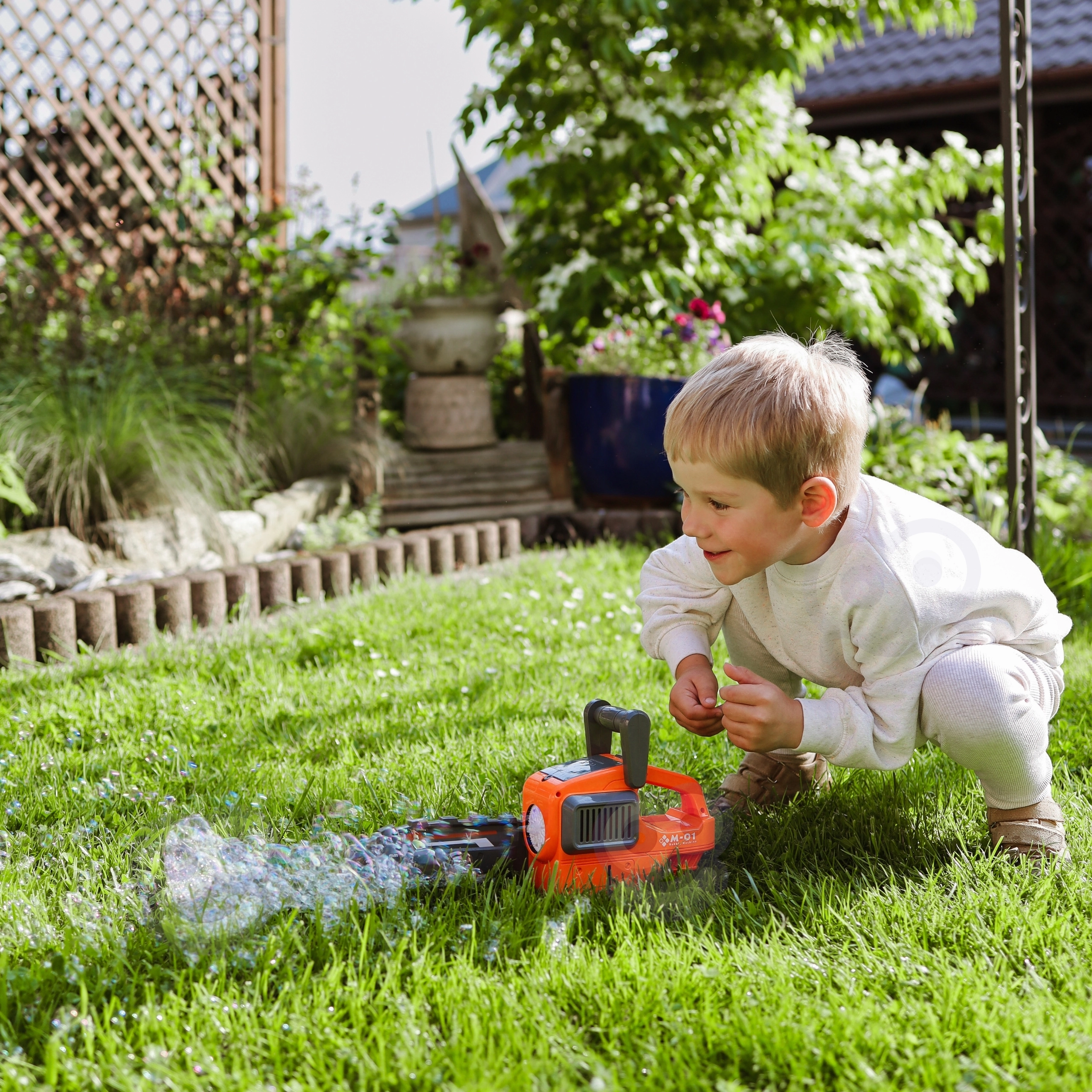 Rotējošā izvade ar gaismām rada dinamisku burbuļu plūsmu visos virzienos – perfekta vizuāla izrāde dārza spēlēm un bērnu ballītēm.