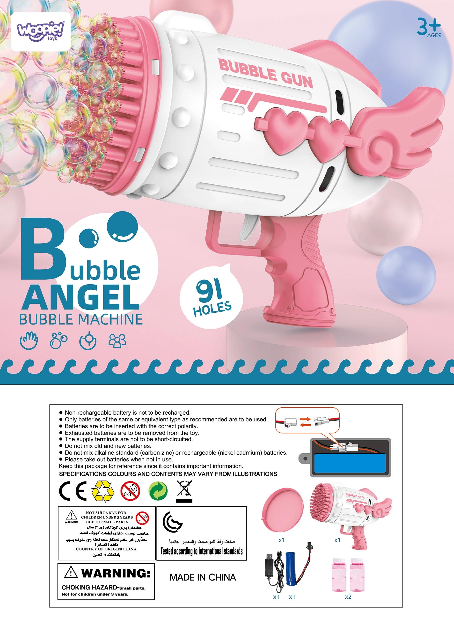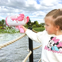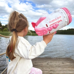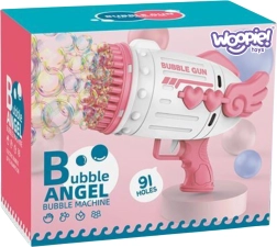 Izklaidējošā WOOPIE burbuļu pistole pārvērš katru spēli par burvīgu skatu. Pateicoties 91 atverei, tā rada milzīgu burbuļu daudzumu ar vienu mēlītes nospiešanu. Tā ir viegli lietojama, ideāli piemērota ārā un telpās, un komplektā atradīsiet arī 2 pudelītes ar šķīdumu, akumulatoru un uzlādes kabeli – vienkārši uzlādējiet, iemērciet un burbuļu jautrība var sākties.