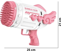 Pateicoties pārdomātam mehānismam, pistole vienmērīgi sadala šķīdumu pa visām atverēm un nodrošina bagātīgu burbuļu efektu. Praktiskais paliktnis šķīdumam atvieglo uzgaļa iemērkšanu. Komplektā ir arī akumulators ar USB uzlādi un 2 uzpildes, lai varētu sākt uzreiz pēc izsaiņošanas.
