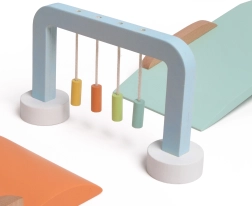 Šis kvalitatīvais koka minigolfa komplekts izgatavots no netoksiska un izturīga koka. Pateicoties vienkāršai salikšanai, varat spēlēt jebkur — viesistabā, bērnistabā vai dārzā. Krāsainie šķēršļi un vienkāršie noteikumi sajūsminās gan iesācējus, gan mazos sportistus.
