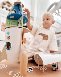 Šī detalizēti izstrādātā raķete slēpj līdz pat 12 tematiskām telpām (piemēram, noliktava, operāciju zāle vai laboratorija), kas mudina bērnus uz atvērtu spēli un stāstu veidošanu. Pateicoties noņemamām sekcijām un interaktīviem elementiem, bērni apgūst loģiku, pacietību un sadarbību.