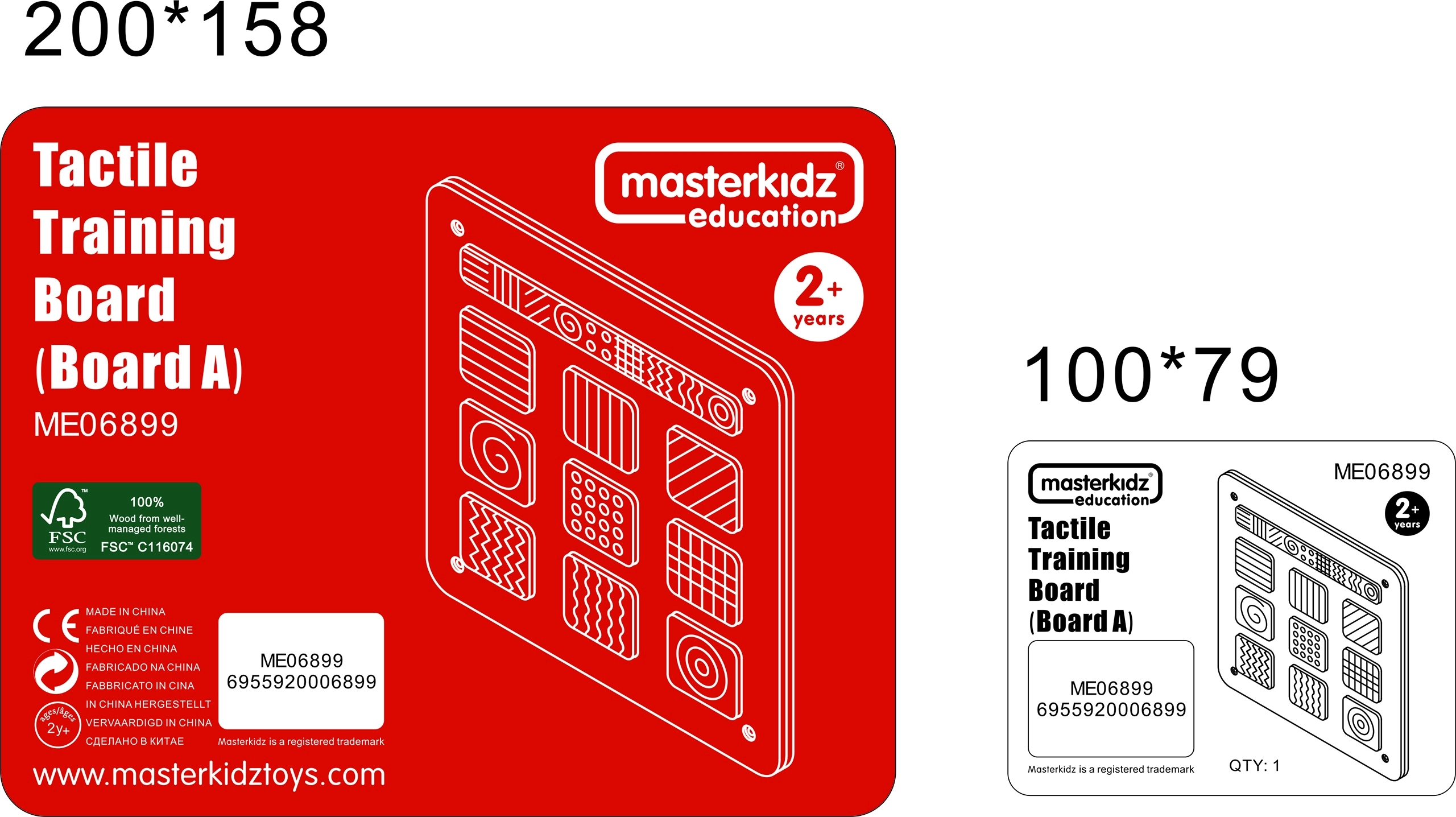 Tablo satur 9 tekstūru pārus ar skaidri atšķiramiem rakstiem, kas veicina mācīšanos caur spēli. Pateicoties robustajam koka izpildījumam, tā ir izturīga un piemērota mājām, bērnudārziem, bērnu stūrīšiem un terapijas centriem. Uzstādīšana ir elastīga – pie sienas, Masterkidz Flex sistēmā vai uz brīvi stāvoša statīva.