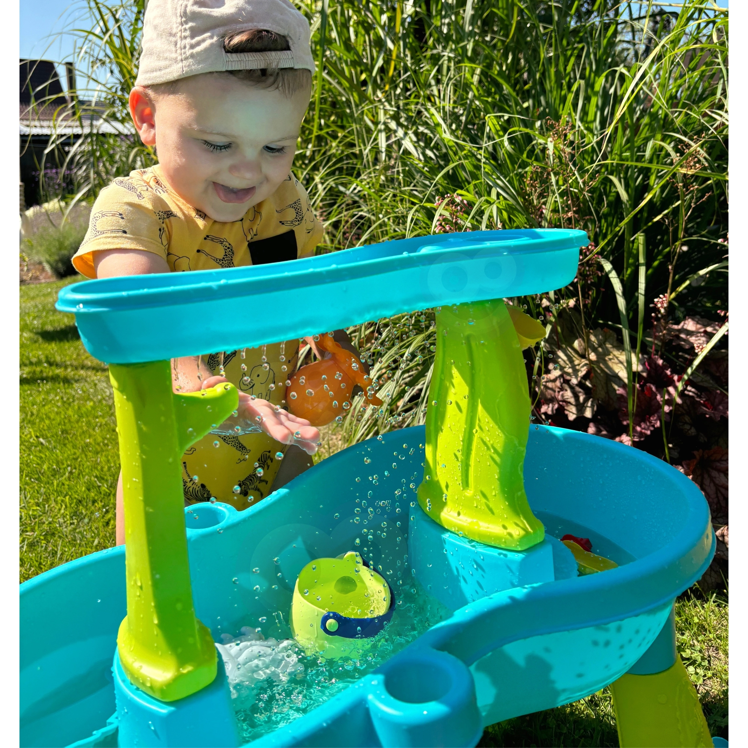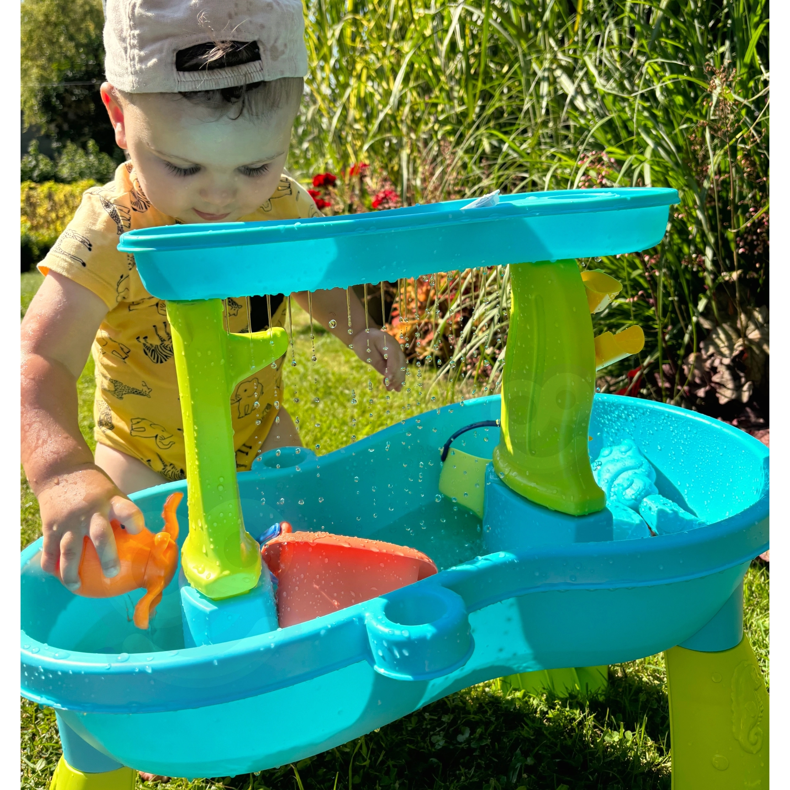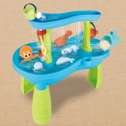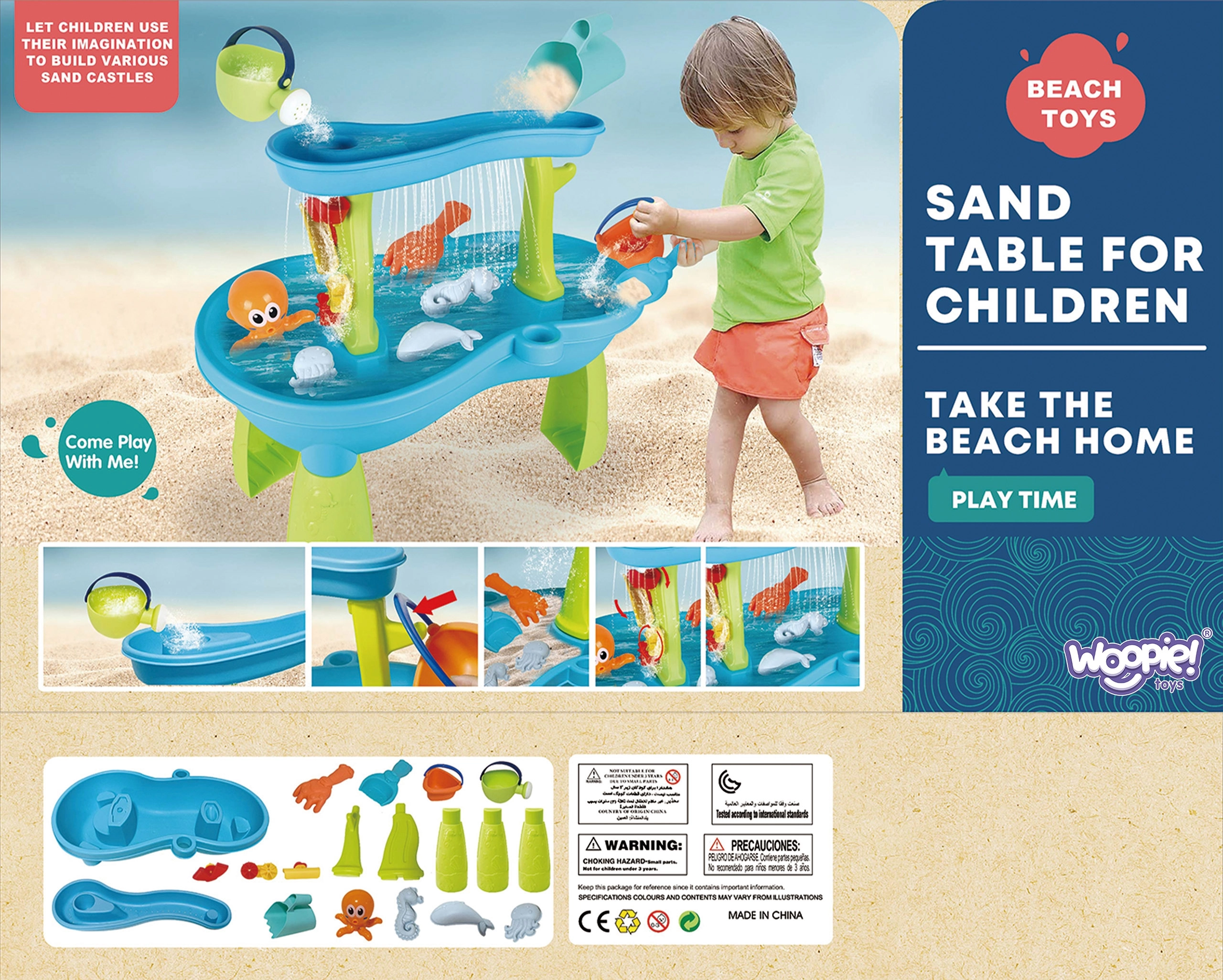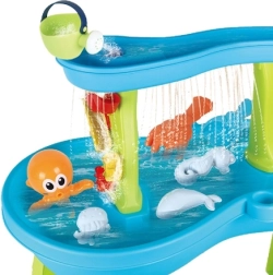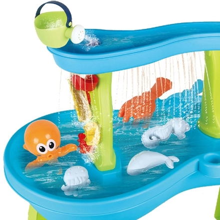 Ūdens galds Astoņkājis no zīmola WOOPIE sniedz unikālu pieredzi ar ūdeni un smiltīm bērniem. Pateicoties 18 piederumiem, piemēram, 3 formiņām, astoņkājim, kanniņai, groziņam, smilšu savācējam un 2 lāpstām, bērni izbaudīs nebeidzamas spēļu iespējas. Ūdens, kas tiek liets galda augšdaļā, var notecēt caur apakšā esošajām atverēm vai griezt ūdens dzirnaviņas. Lieliski piemērots spēlēm gan mājās, gan ārā!