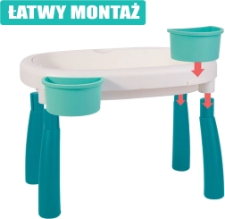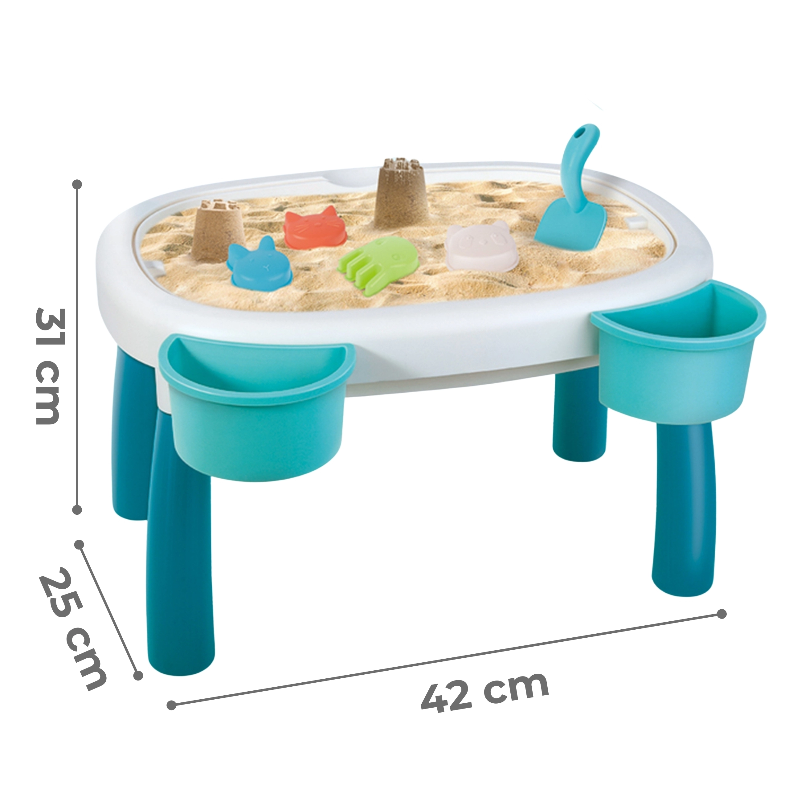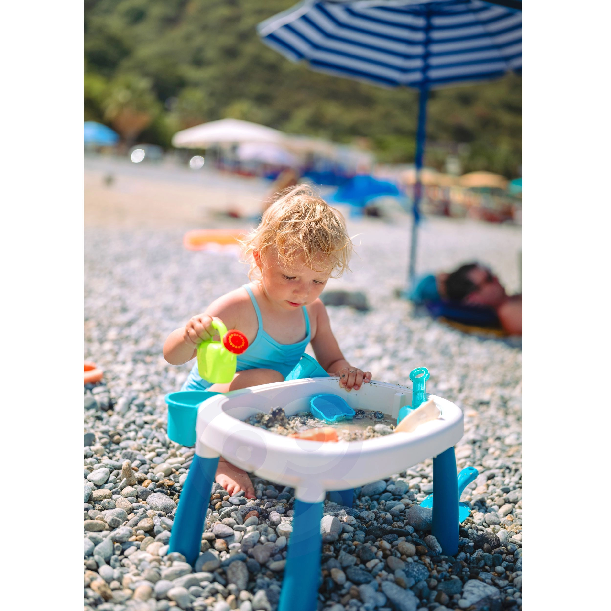 Atklājiet universālo bērnu 2-in-1 galdu ūdenim un smiltīm, kas pārvērš katru pēcpusdienu mazā brīvdienu pasaulē. Divi atsevišķi konteineri ļauj apvienot ūdens rotaļas ar smilšu aktivitātēm, kamēr stabilās kājas un izturīgā plastmasa nodrošina drošas rotaļas mājās, dārzā un pludmalē.