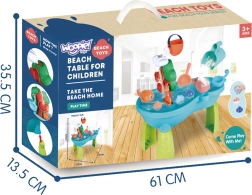 2-in-1 ūdens galds ar smilšu kasti no WOOPIE ir lieliska izvēle bērniem no trīs gadu vecuma, kuriem patīk pavadīt laiku pie ūdens. Pateicoties inovatīvajam dizainam, galdu var izmantot kā ūdens galdu un kā smilšu kasti. Rotaļlieta ir piemērota lietšanai gan ārā, gan telpās, piedāvā vienkāršu montāžu un daudz piederumu.