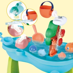 2-in-1 ūdens galds no zīmola WOOPIE ir ideāla rotaļlieta spēlēm ar ūdeni un smiltīm. Komplektā iekļauti piederumi, piemēram, zivis, lejkanna, spainis, peldriņķi un daudz kas cits.