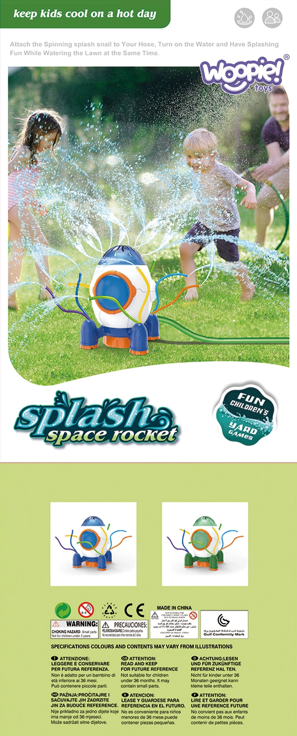 Raķešu laistītājs WOOPIE pārvērš dārzu vasaras ūdens rotaļu laukuma. Pateicoties 360° izsmidzināšanai un elastīgām sprauslām, tas veido košus ūdens lokus, ko bērni mīl, vienlaikus palīdzot laistīt zālienu. Vieglā konstrukcija, gludas malas un kvalitatīvi materiāli nodrošina ērtu un drošu rotaļāšanos.