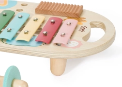 Šajā komplektā ir pieci dažādi mūzikas instrumenti, kas lieliski piemēroti mazām bērnu rokām. Katrs instruments ir izgatavots no kvalitatīva koka un krāsots ar netoksiskām krāsām, kas ir drošas bērniem un videi.
