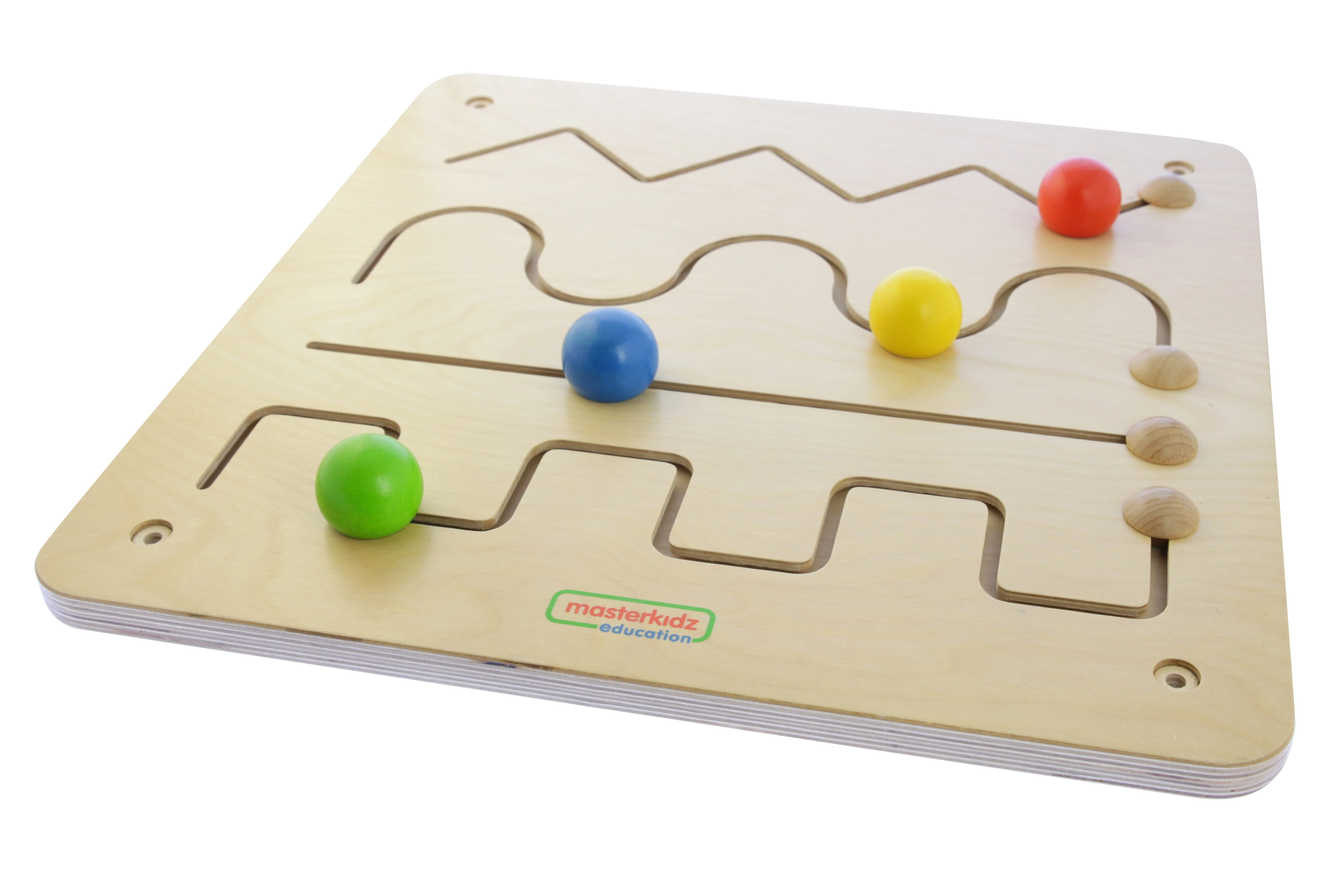 Pārbīdāmais labirints dažādās formās uzlabo agrīnās rakstīšanas prasmes un koordināciju.