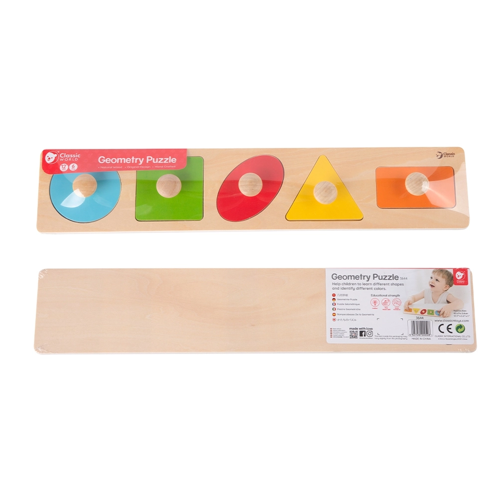 Koka puzle Classic World ir paredzēta bērniem no 12 mēnešu vecuma. Rotaļlieta ietver pamatni ar izgrieztiem formu kontūrām un 6 detaļas ar rokturiņiem, kas atbilst pamatnes formām. Visas detaļas ir viegli satveramas, pateicoties mazajiem rokturiņiem.