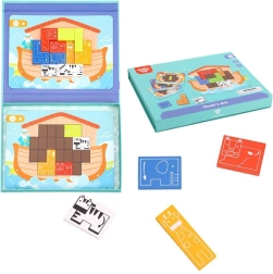 Gudra un jautra spēle mazajiem prātiem: magnētiskā puzle ar Noasa šķirsta motīvu piedāvā bērniem no 3 gadu vecuma 30 loģiskus uzdevumus ar 10 koka dzīvnieku gabaliņiem. Uzdevums ir salikt visus gabaliņus tā, lai tie pilnībā aizpildītu laukumu. Spēle attīsta sīko motoriku, loģisko domāšanu un koncentrēšanos, un tā ir izgatavota no drošiem, netoksiskiem materiāliem.