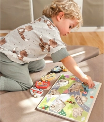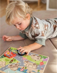 Piemērots no 12 mēnešiem. Trenē sīko motoriku, roku–acs koordināciju un loģisko domāšanu, paplašina vārdu krājumu un veicina koncentrēšanos.