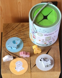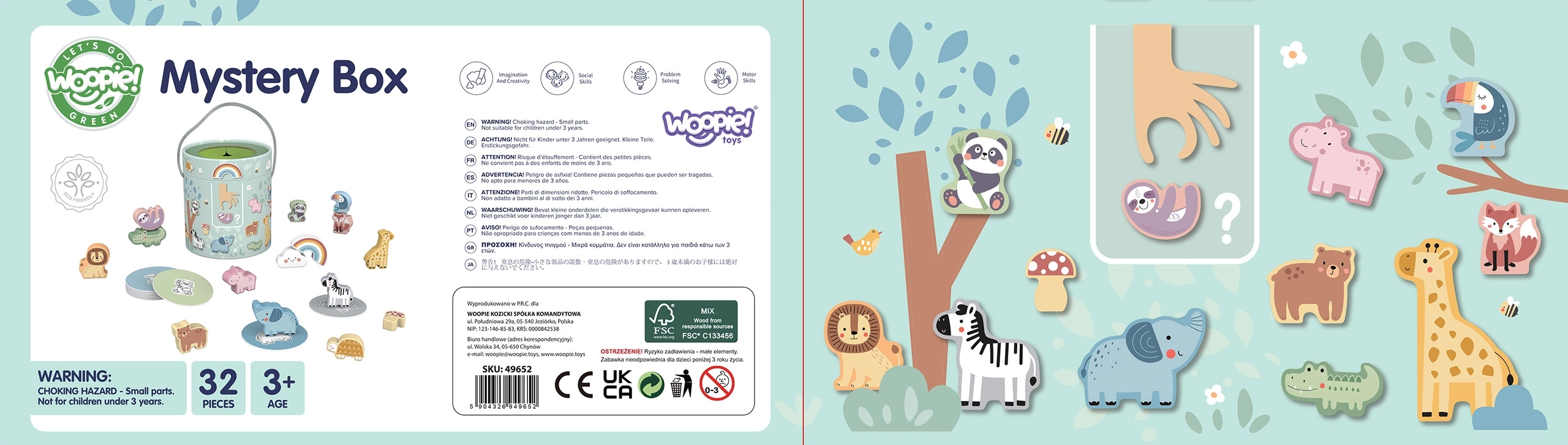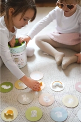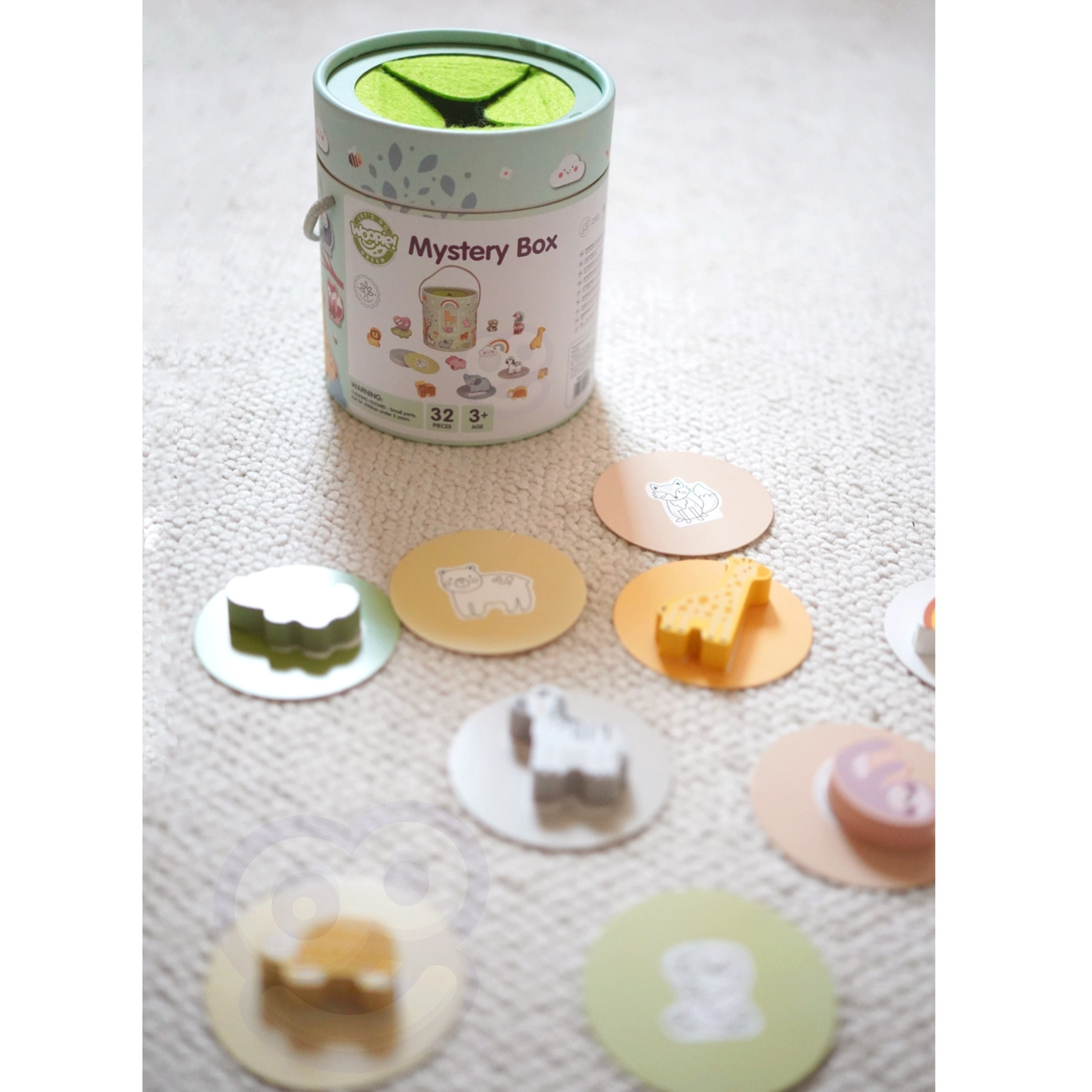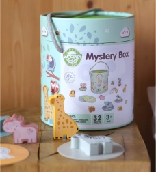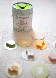 Spēlē Noslēpumu Kastīte bērni izvēlas vienu no 15 kartītēm un ar taustes palīdzību min, kura figūriņa slēpjas kastītē, vienlaikus mācoties atpazīt tās formu. Spēle attīsta taustes sajūtu, sīko motoriku un koncentrēšanos. Komplektā paredzēti dažādi radoši spēles veidi, piemēram, pārošana, krāsu mācīšanās, dzīvnieku nosaukumi un torņu būvēšana.
