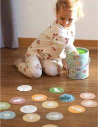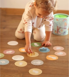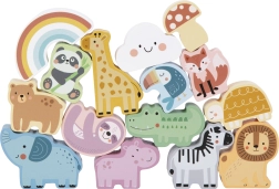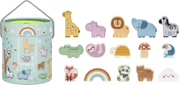 Satur 15 koka figūriņas, tostarp dzīvnieciņus, varavīksni, mākonīti un sūnenu daudzveidīgai un izglītojošai spēlei.