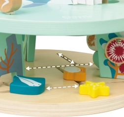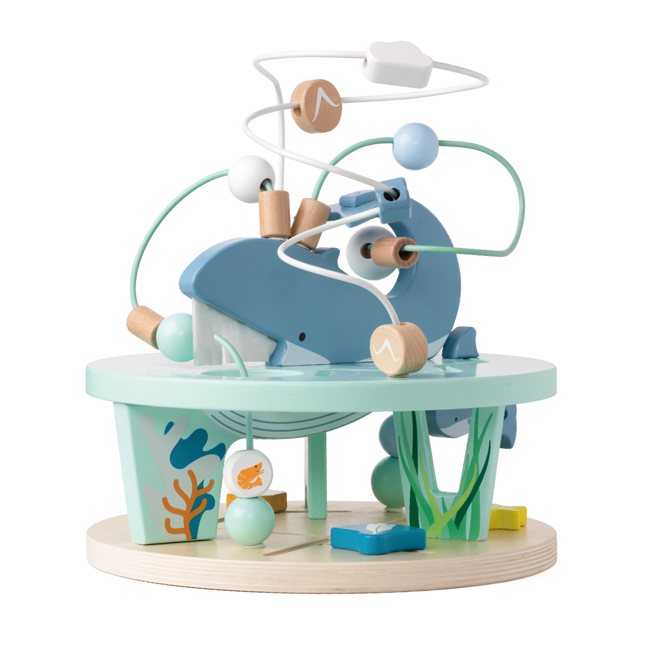 Koka labirints Jūras pasaule ir lieliska sajūtu rotaļlieta, kas attīsta sīko motoriku un roku-acu koordināciju. Kustīgās detaļas un krāsas iepriecinās ikvienu bērnu, kurš var pārvietot lodītes pa liektiem stieplēm un trenēt kustību precizitāti. Šī rotaļlieta ne tikai izklaidē, bet arī palīdz attīstīt problēmu risināšanas spējas un veiklību.