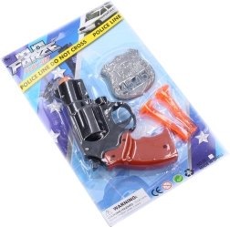- Pilns komplekts – pistole, 2 patronas un policista nozīmīte.