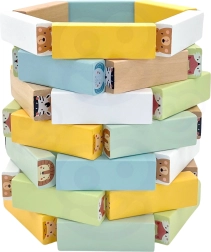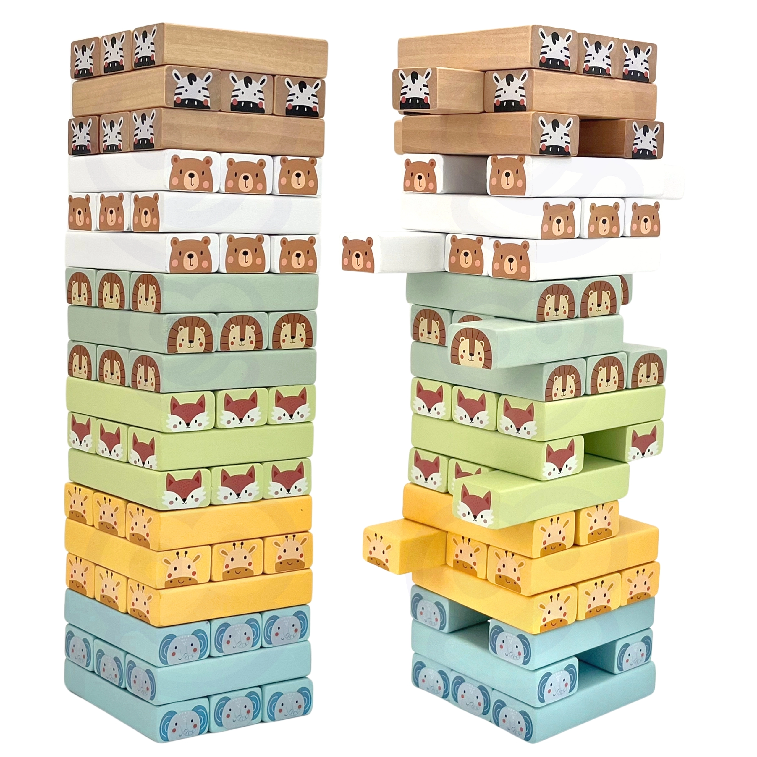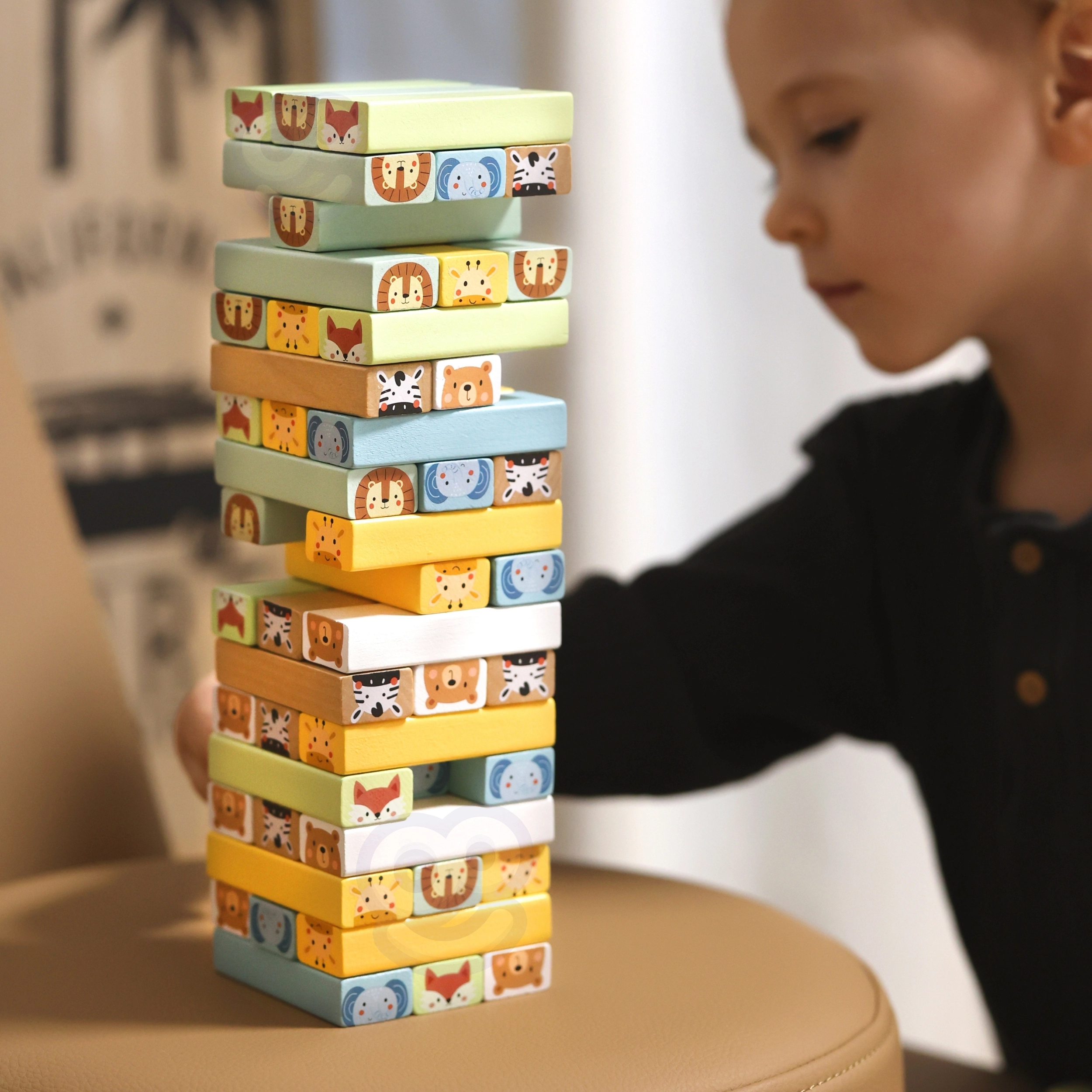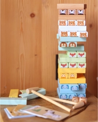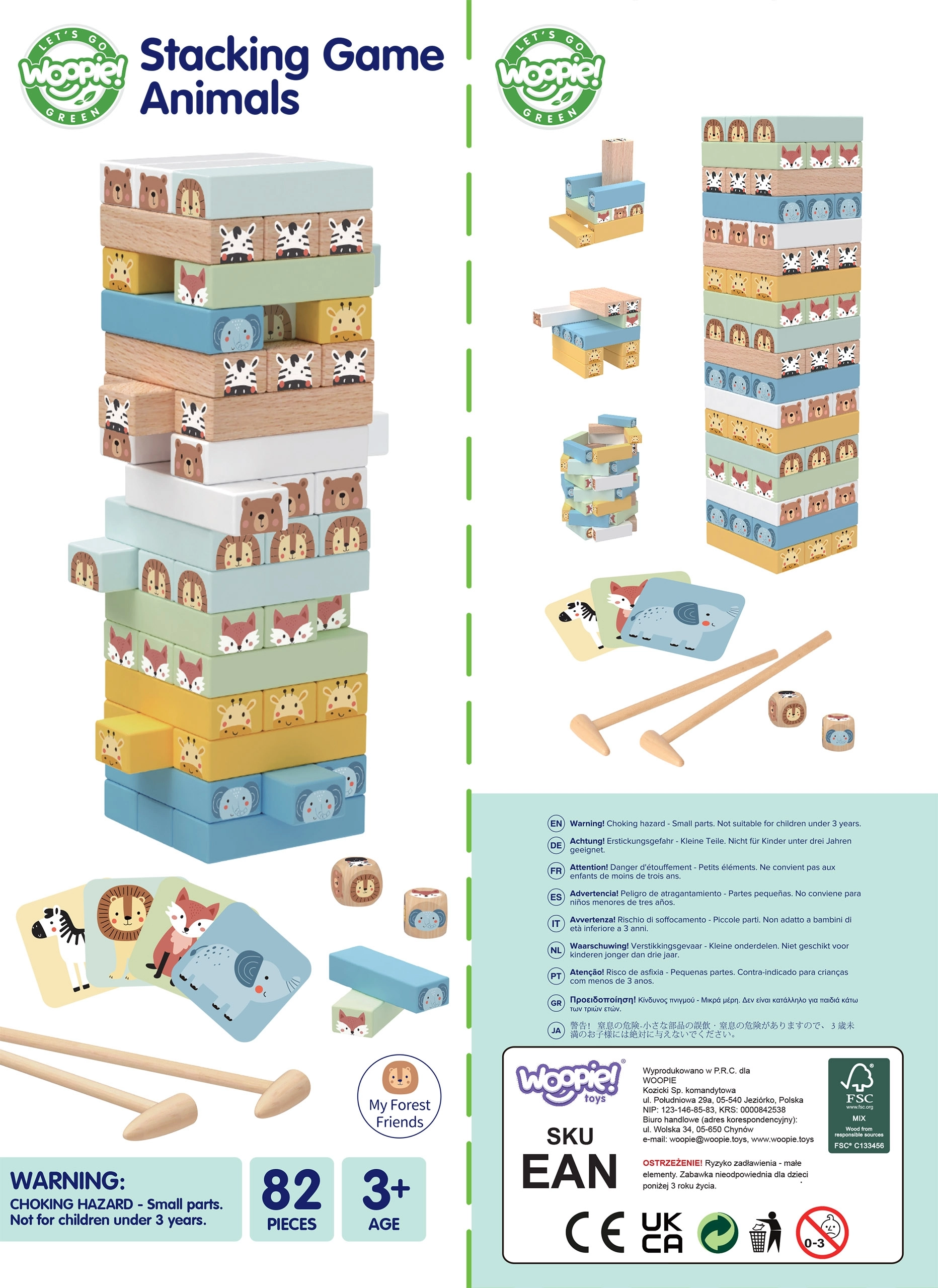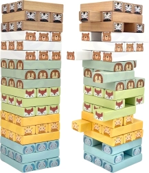 Koka spēle Drebinošais tornis no zīmola WOOPRIE ir lieliska izvēle bērnu motorikas attīstībai un izklaidei! Komplektā ietilpst 82 izturīga koka gabaliņi pasteļtoņos ar dzīvnieku uzlīmēm. Lieliski veicina stratēģisko domāšanu un koncentrēšanos.