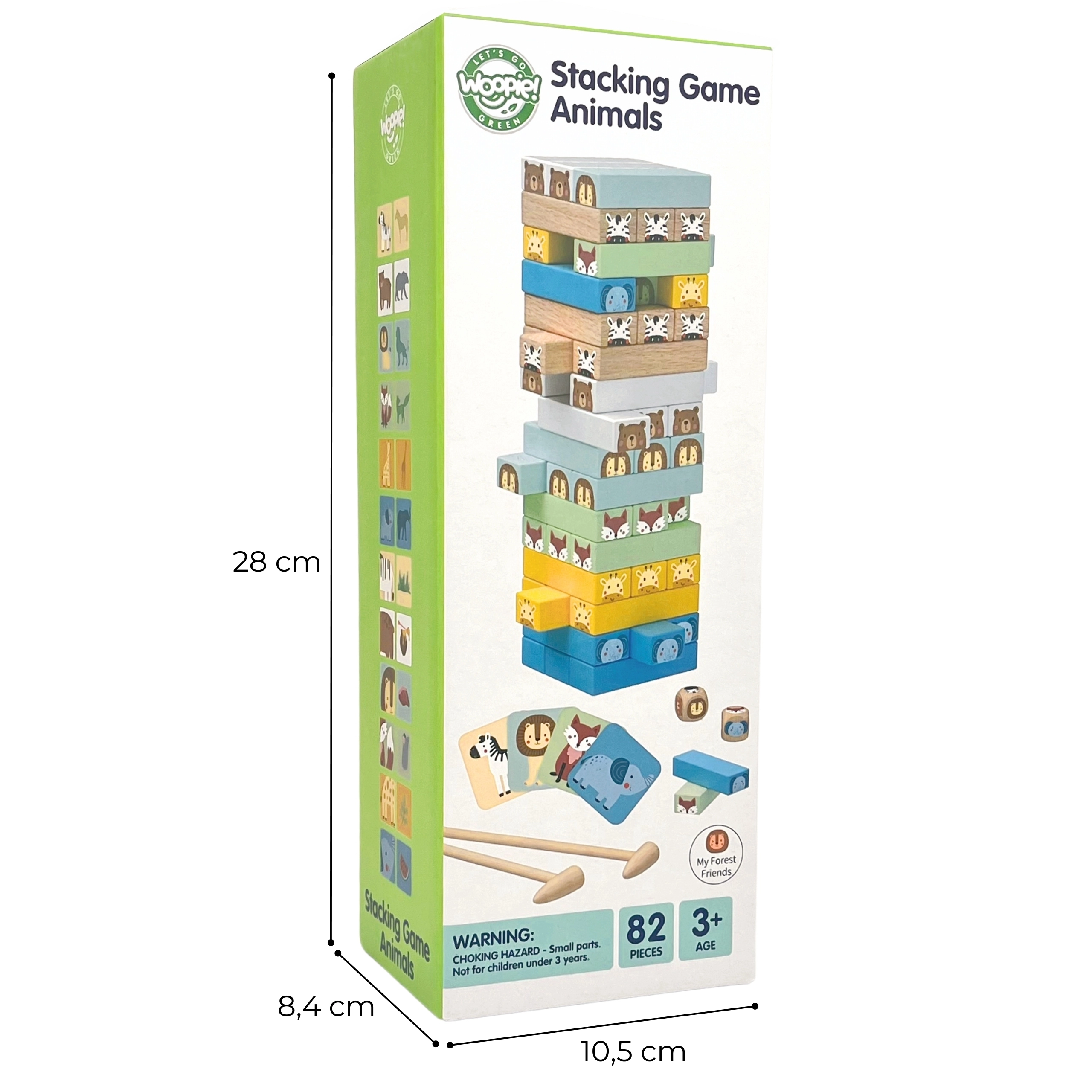 Atklājiet koka spēles Drebinošais tornis no WOOPRIE burvību. Tā ir lieliska spēles un izglītojoša rīka kombinācija, kas izklaidē un vienlaikus veicina bērnu attīstību. Šis lieliskais komplekts ietver: