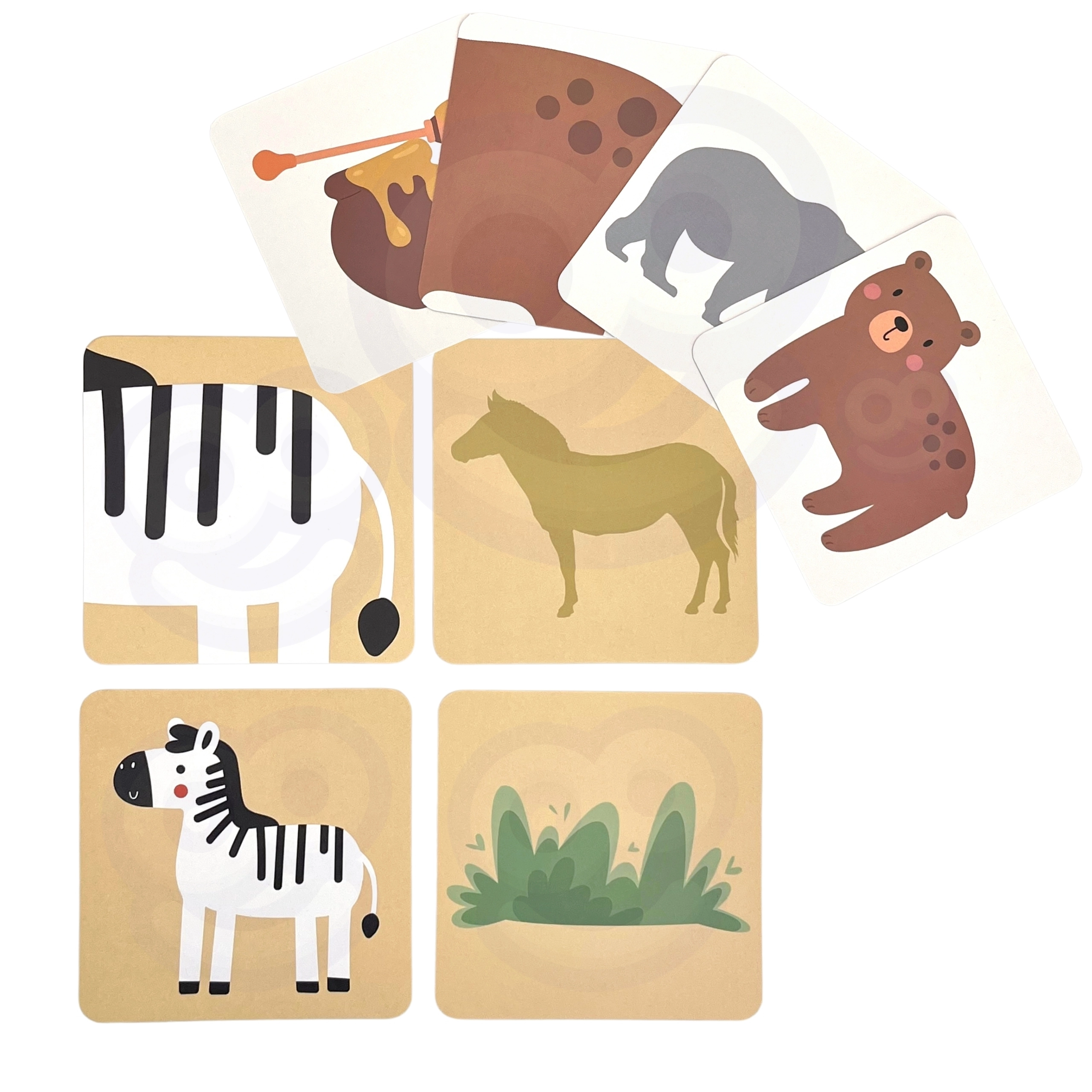 - Spēle ar kartītēm: spēlētājiem jāsaskaņo kartītēs redzamie dzīvnieki ar atbilstošajiem attēliem vai siluetiem.