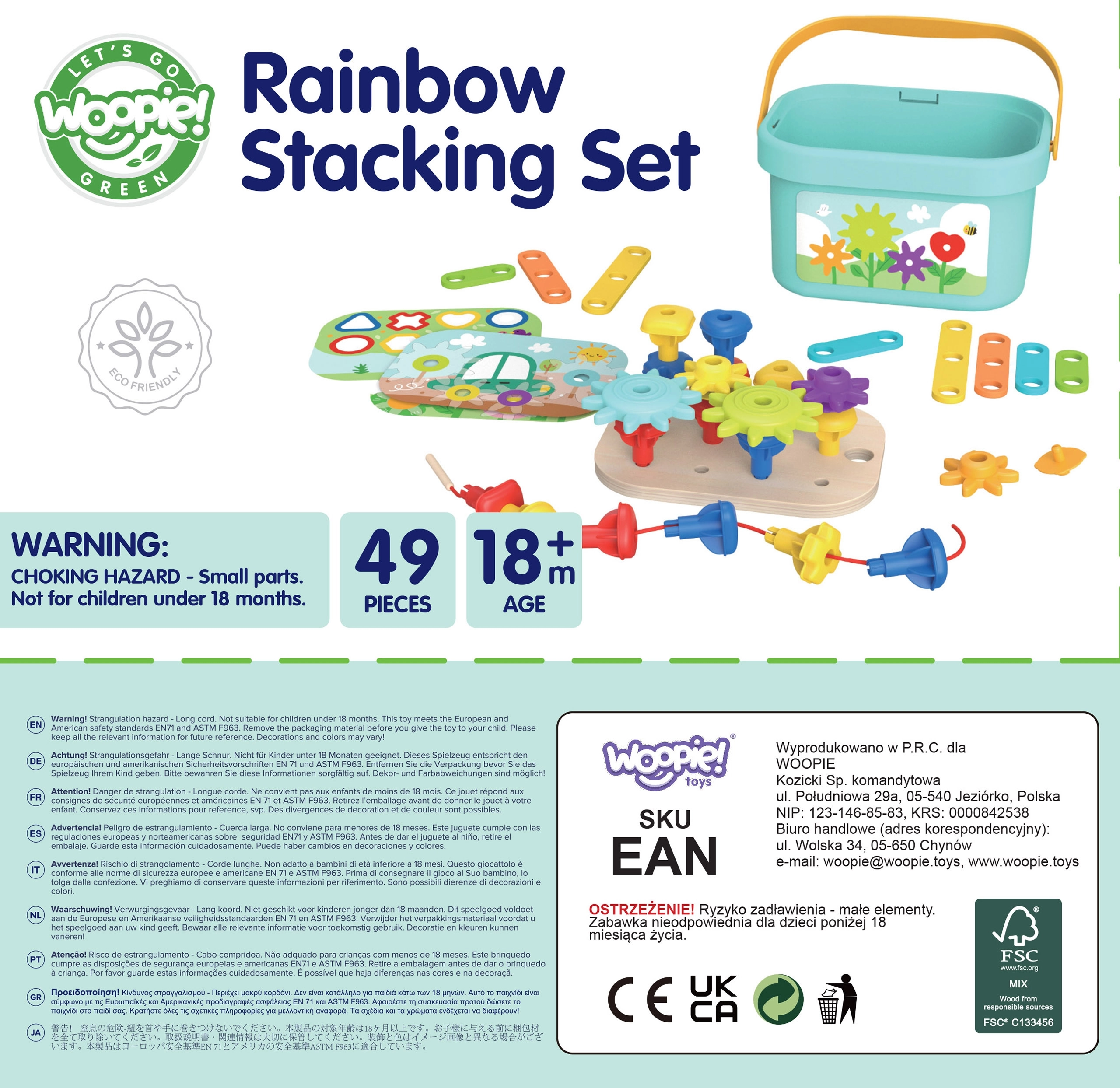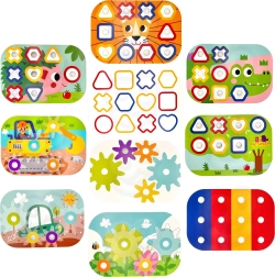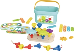 Ar šo kasti bērni var priecāties par 12 dažādām aktivitātēm vienā kompaktā iepakojumā – no rakstu salikšanas, formu un krāsu apgūšanas līdz pat 3D konstrukciju būvēšanai. Visas detaļas var ērti uzglabāt iekšpusē, kas atvieglo kompakto pārnēsāšanu un kārtību. Produkts ir izgatavots no dabīgas koksnes un tam ir noapaļotas malas maksimālai drošībai.