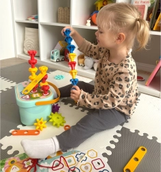 Darbošanās ar sīkiem elementiem un vēršana stiprina smalko motoriku un koordināciju.