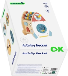 Koka raķete ir daudzfunkcionāla rotaļlieta, kas piedāvā sešas dažādas aktivitātes bērnu prasmju attīstībai:
