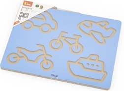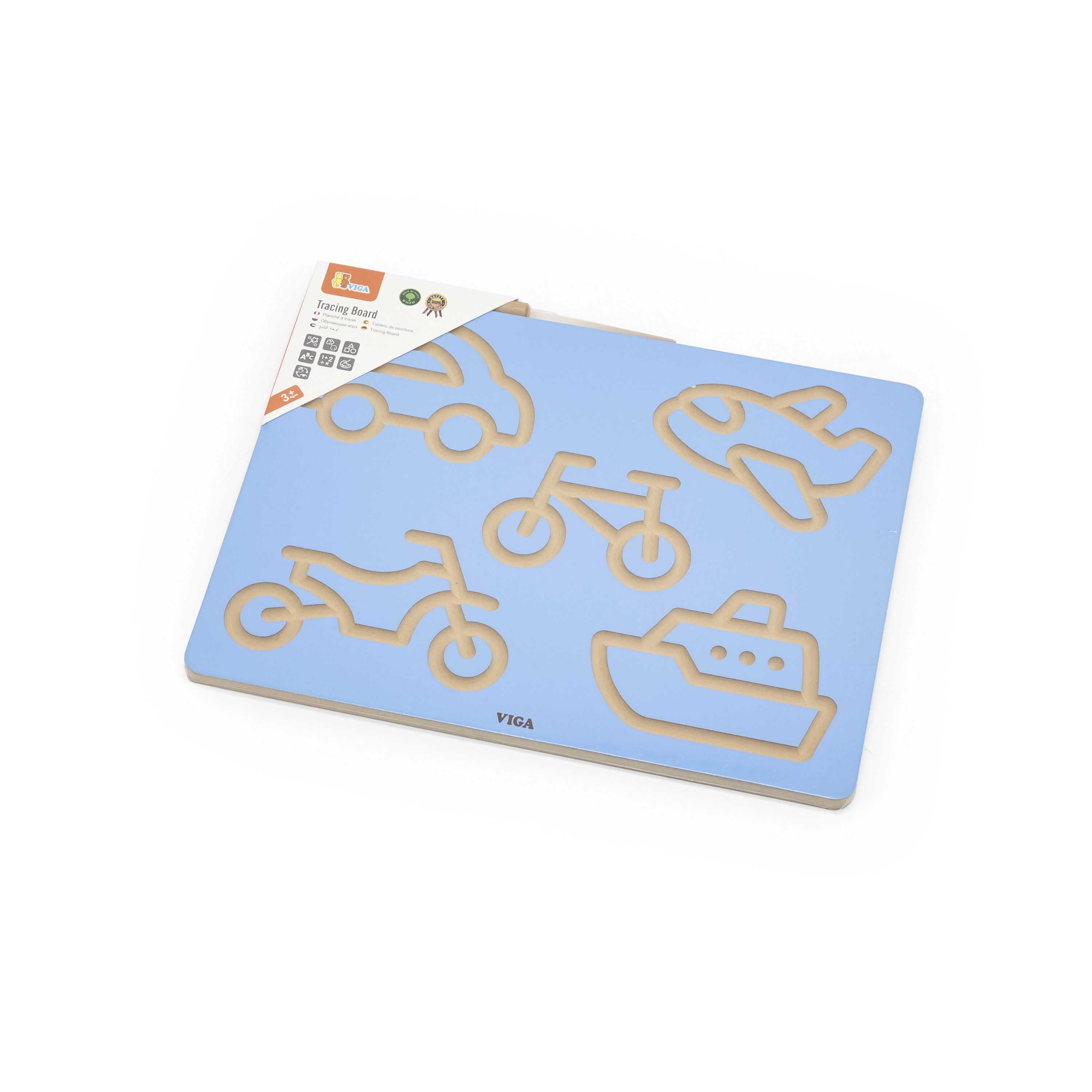 Atklājiet aizraujošu ceļu uz pirmajiem vilcieniem un burtiem. Koka planšete VIGA ar transportlīdzekļu motīviem virza bērnus uz plūdenām roku kustībām, pareizu spiedienu un vilciena virzienu. Treniņš notiek dabiski caur spēli – atkārtota rievu apvilkšana veicina koncentrēšanos un roku drošību.