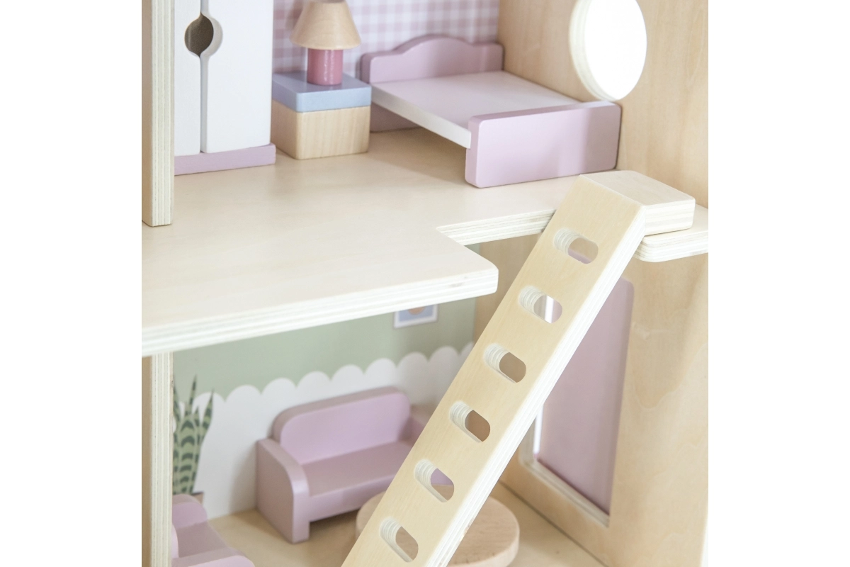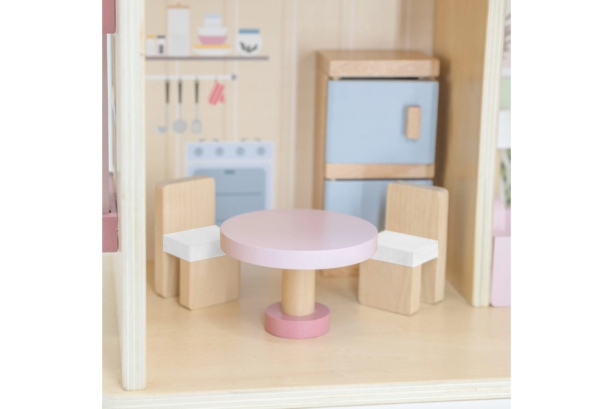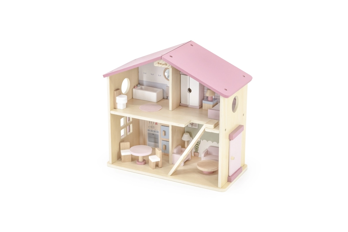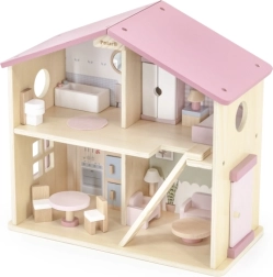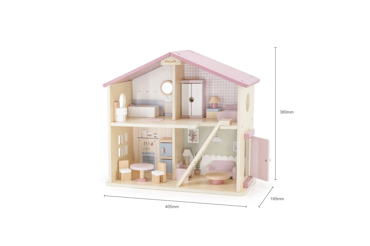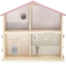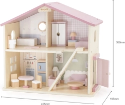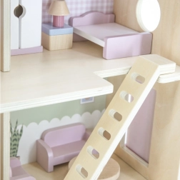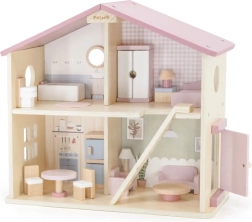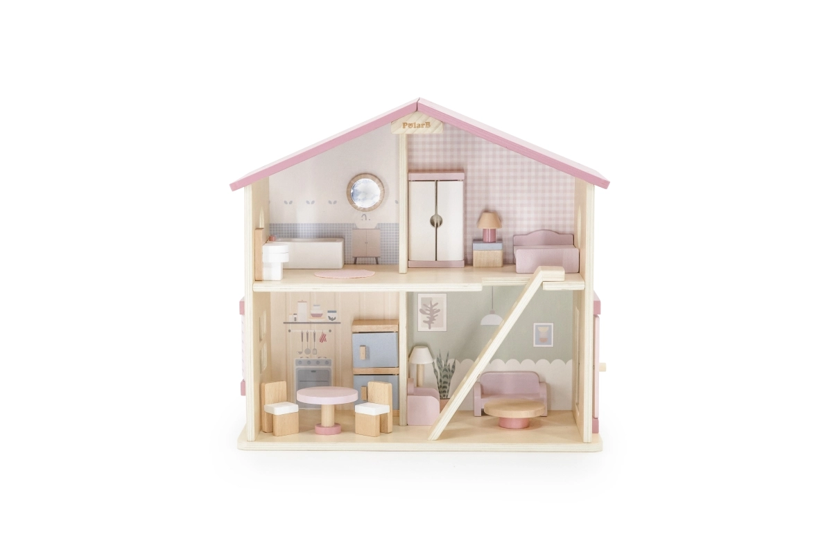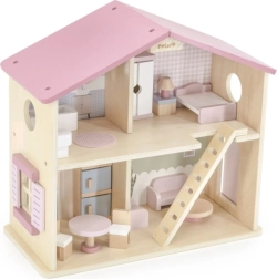 Stilīga koka leļļu māja no zīmola Viga PolarB iepriecinās bērnus no 3 gadu vecuma. Tā piedāvā 2 stāvus ar kāpnēm, ir pilnībā aprīkota ar mēbelēm un izgatavota no kvalitatīva koka maigos pasteļtoņos. Ideāli piemērota lellēm līdz 10 cm un fantāzijas un sociālo prasmju attīstīšanai.