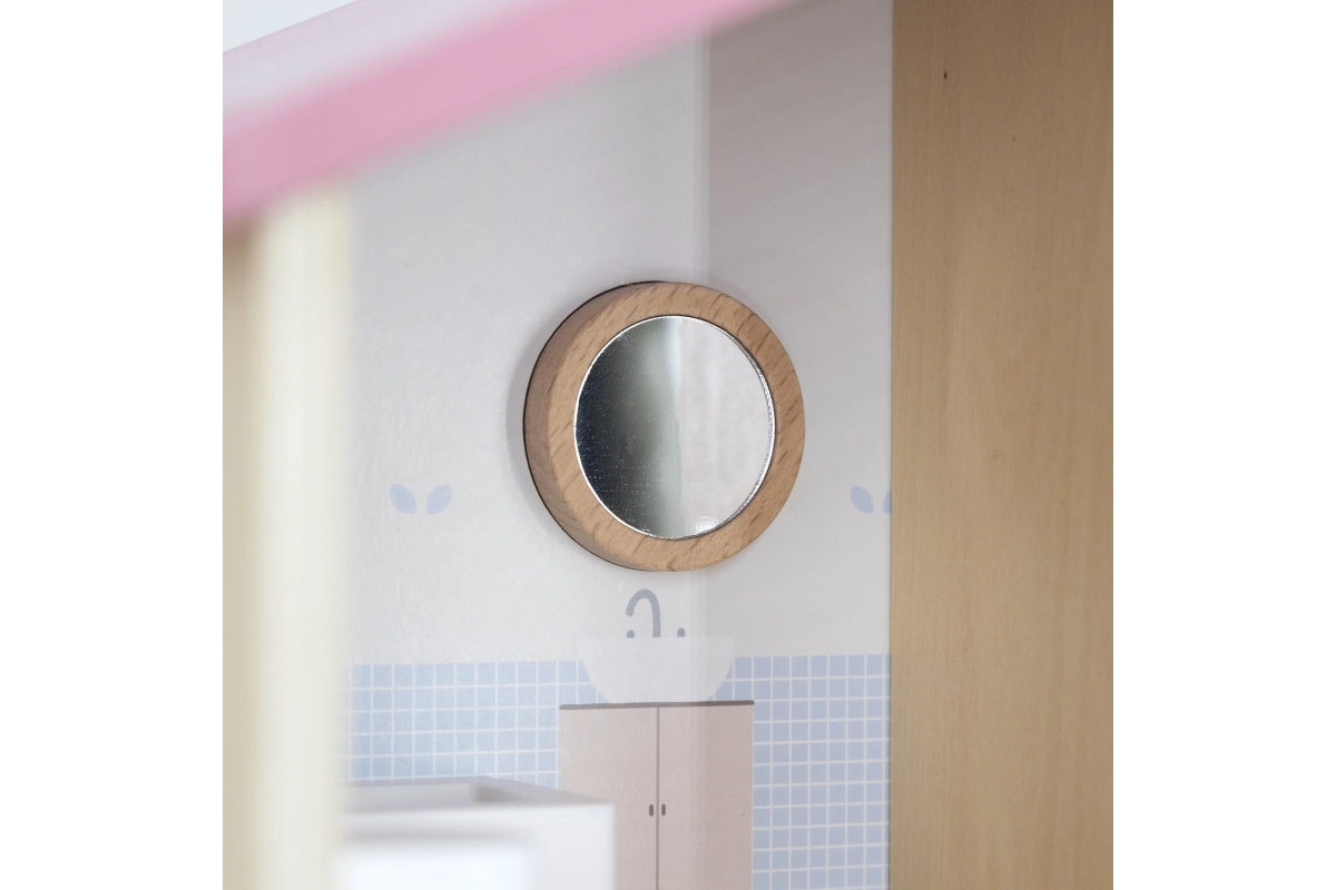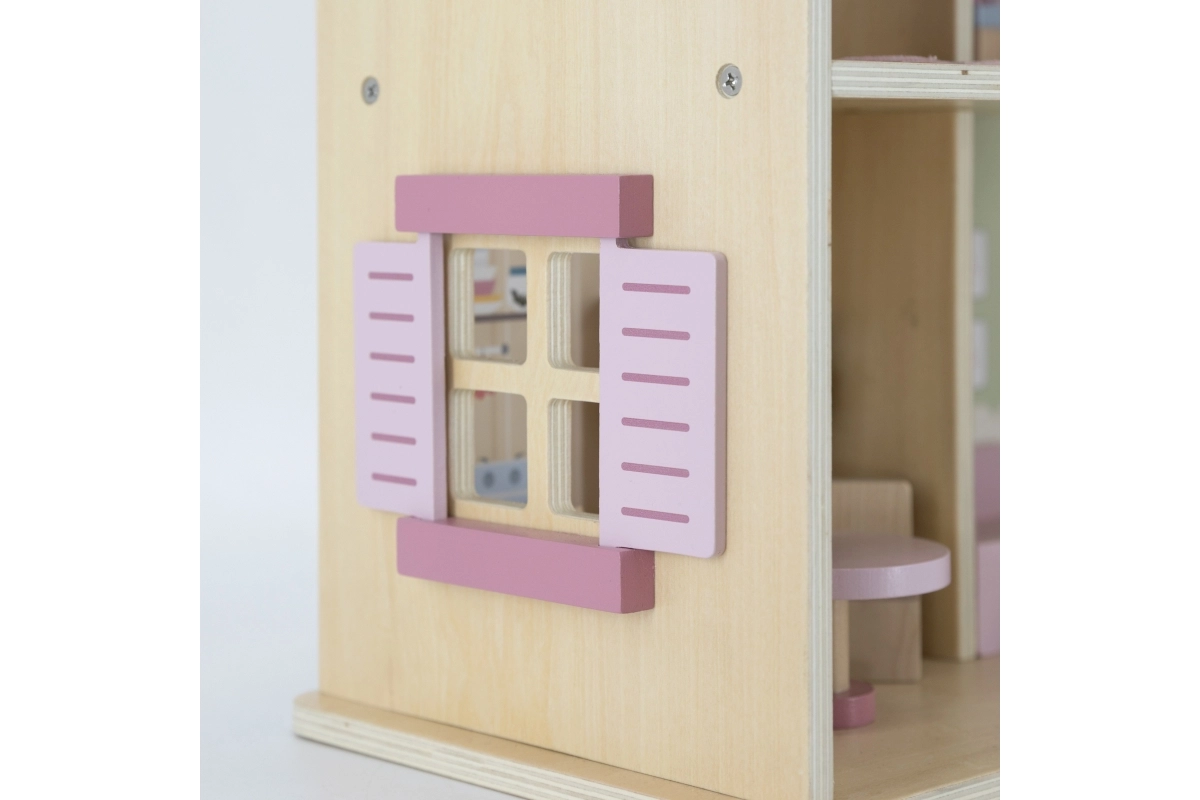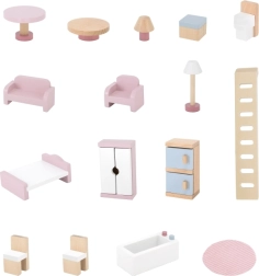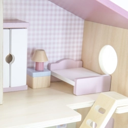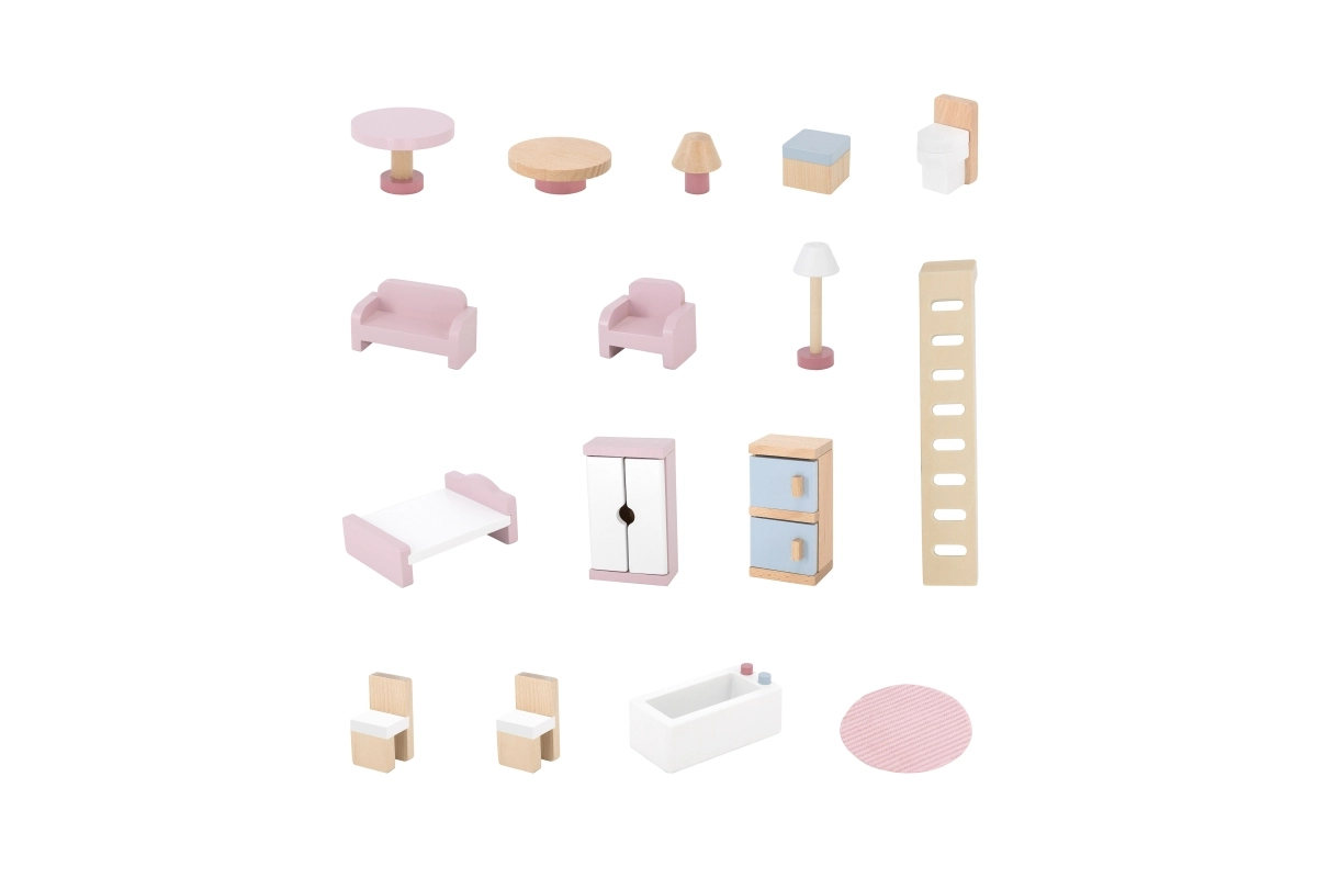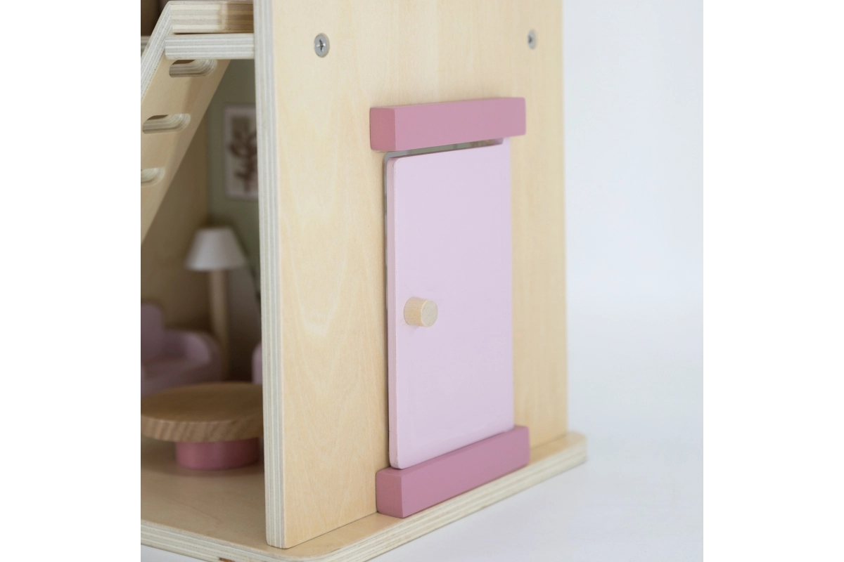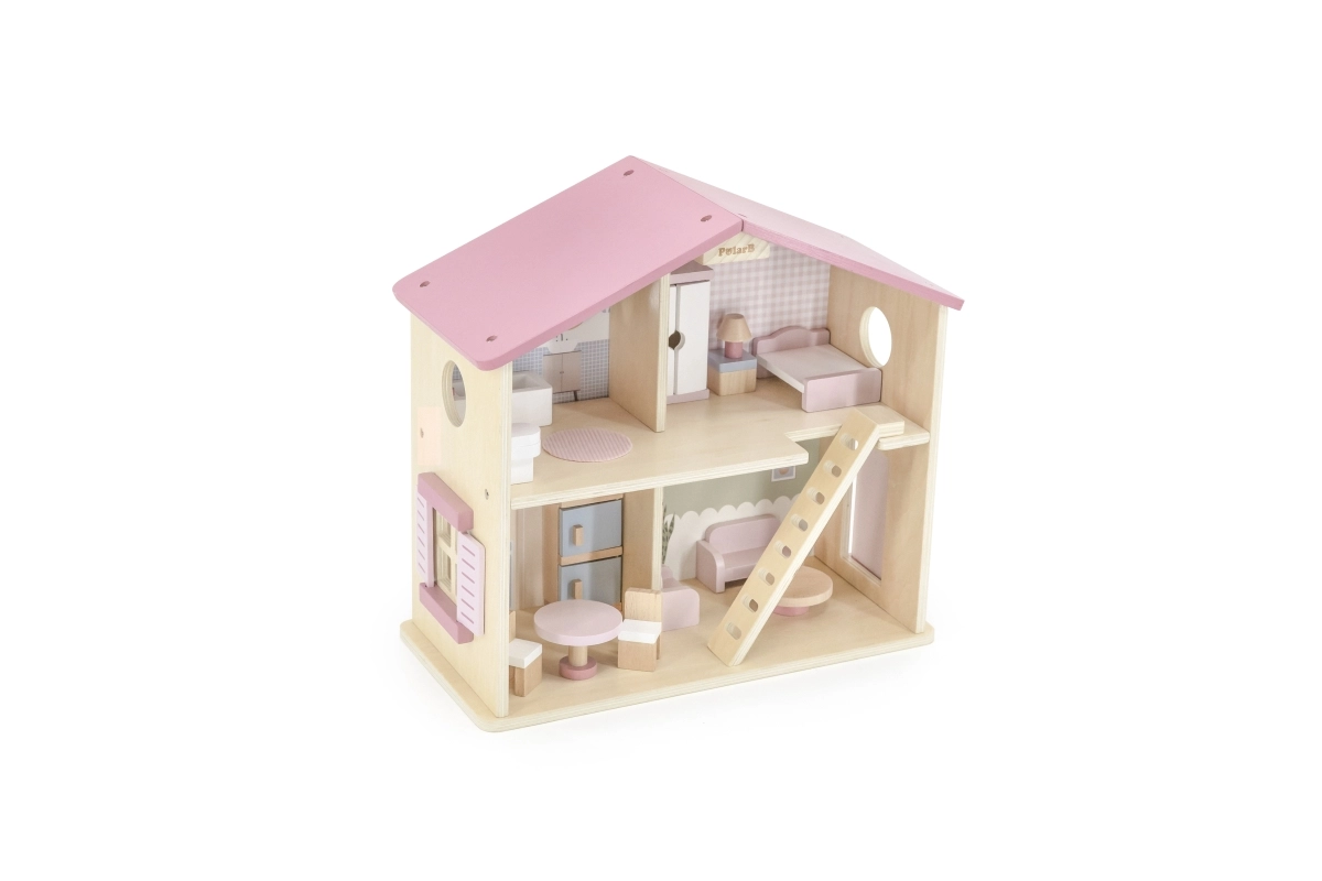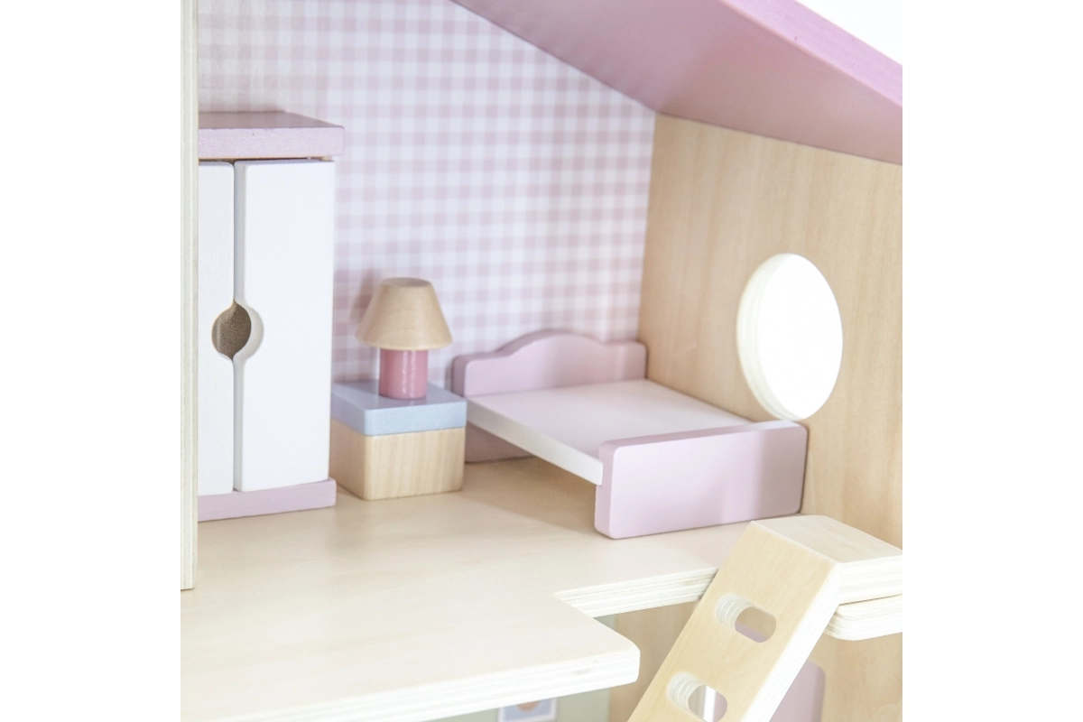 Stilīga koka leļļu māja no zīmola Viga PolarB iepriecinās bērnus no 3 gadu vecuma. Tā piedāvā 2 stāvus ar kāpnēm, ir pilnībā aprīkota ar mēbelēm un izgatavota no kvalitatīva koka maigos pasteļtoņos. Ideāli piemērota lellēm līdz 10 cm un fantāzijas un sociālo prasmju attīstīšanai.
