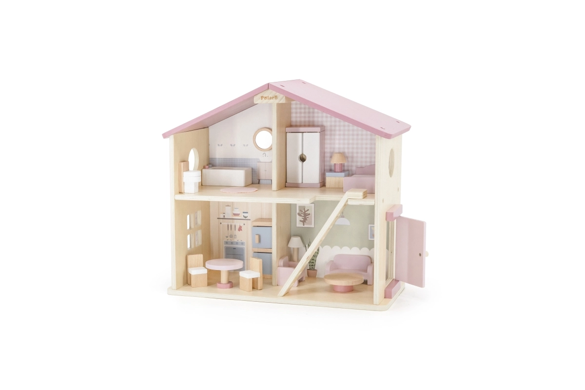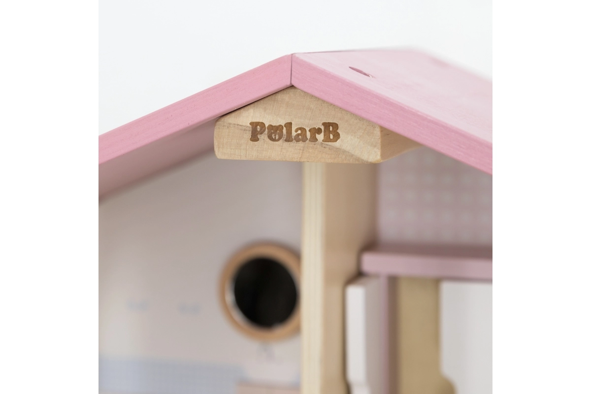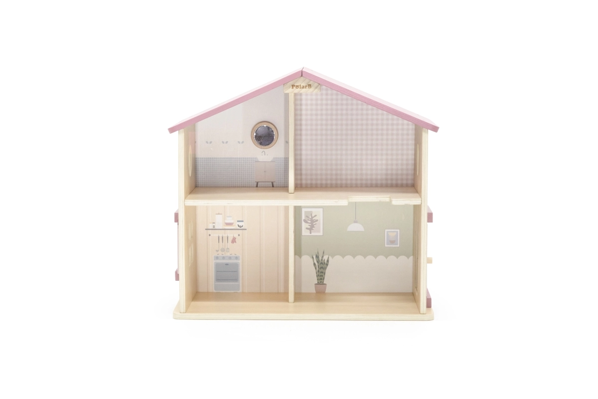 Koka leļļu māja Viga PolarB nodrošina bērniem skaistu vidi radošām spēlēm. Divi stāvi ar kāpnēm piedāvā virtuvi, viesistabu, vannasistabu un mājīgu guļamistabu – katra telpa ir rūpīgi izstrādāta un aprīkota ar detalizētiem aksesuāriem. Pateicoties izturīgajai konstrukcijai no kvalitatīva koka un laikmetīgiem pasteļtoņiem, mājiņa ir droša, ilgmūžīga un lieliski iederas bērnistabā.