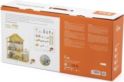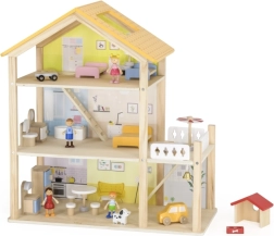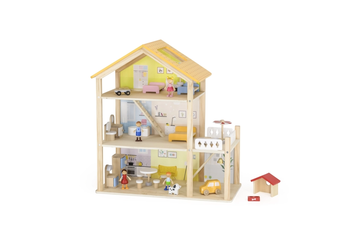 Šī rūpīgi izstrādātā leļļu māja piedāvā virtuvi ar viesistabu, vannasistabu, guļamistabu, bērnistabu, balkonu ar sauļošanās krēslu un saulessargu, kā arī garāžu ar mašīnīti. Komplektā ir daudzveidīgs mēbeļu klāsts, 4 figūriņas un sunītis – viss gatavs tūlītējai spēlei.