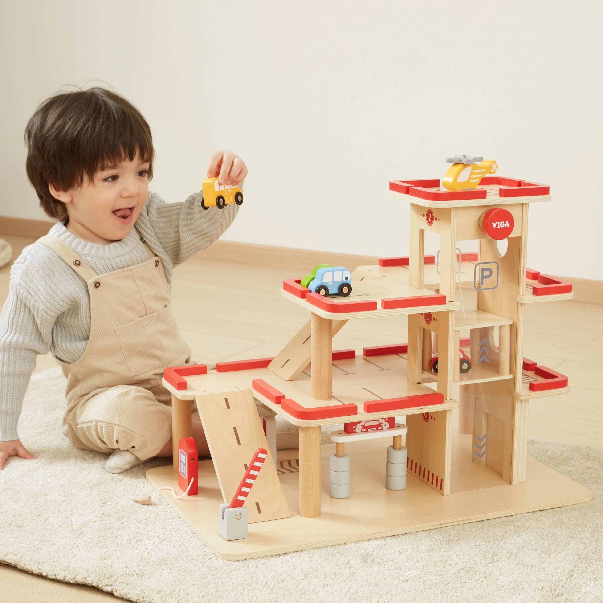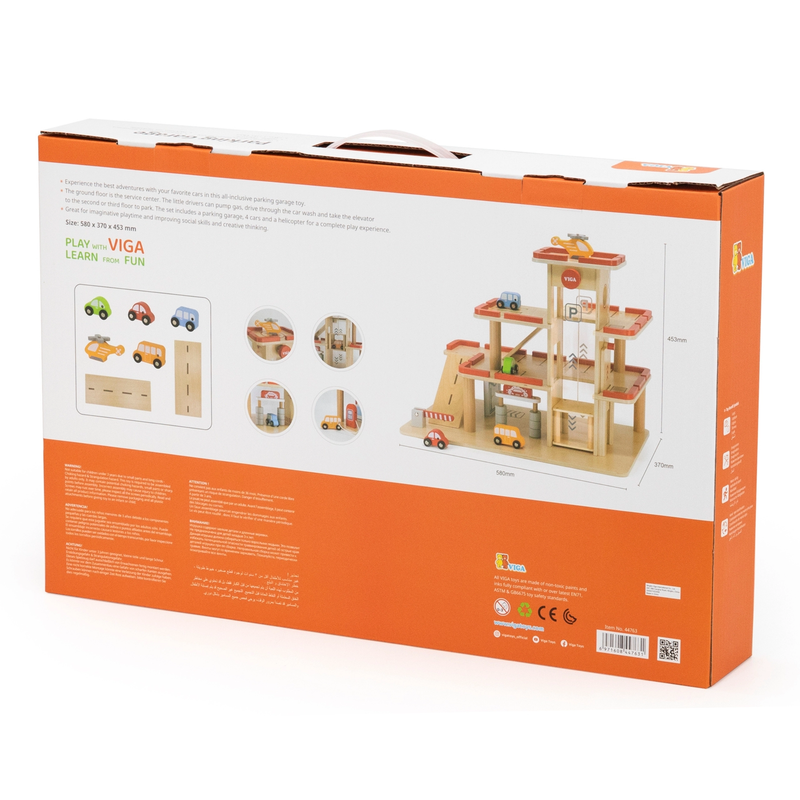 VIGA koka garāža ir lieliska izvēle mazajiem auto un lidaparātu cienītājiem. Trīs stāvi ar rampām, rokas lifts un nosēšanās laukums helikopteram nodrošina stundām ilgu radošo spēli. Pateicoties stabilajai konstrukcijai un rūpīgajam izpildījumam, komplekts piemērots gan individuālai, gan kopīgai spēlei.
