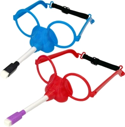 - Brilles ar vietu flomāsterim un siksnām izmēra regulēšanai.