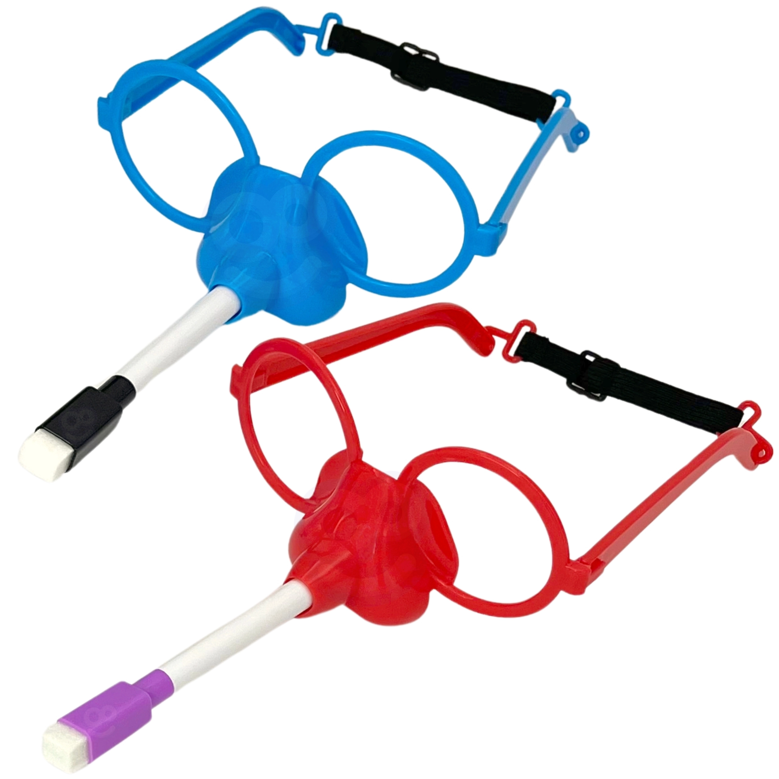 - Pirmais spēlētājs uzliek speciālās brilles ar flomāsteri.
