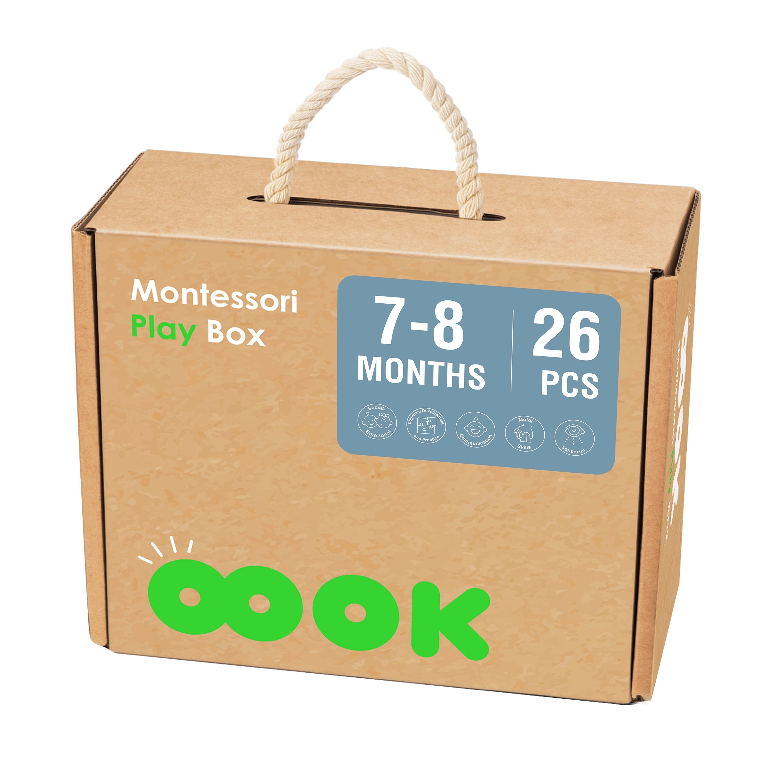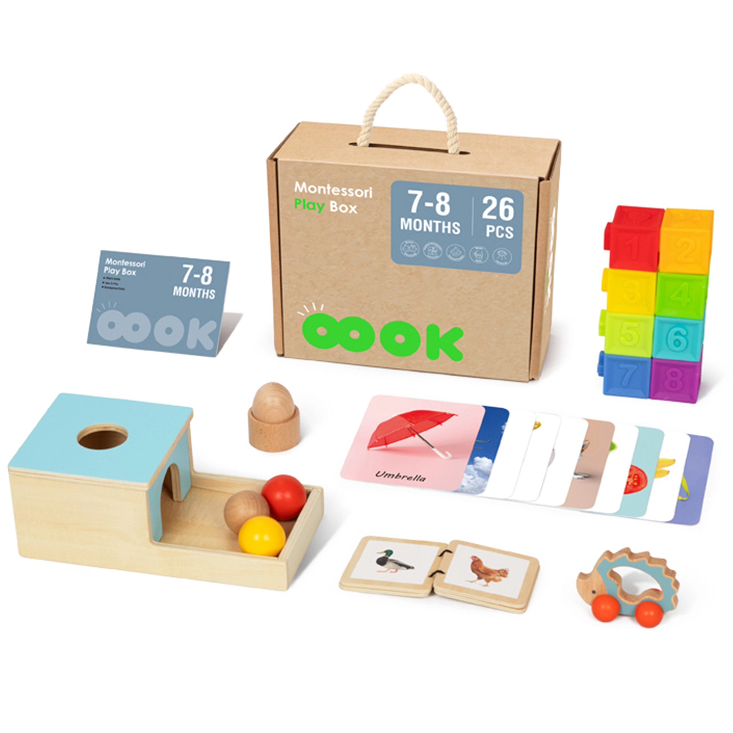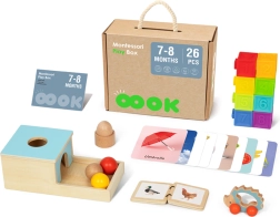 Montesori kaste no Tooky Toy ir paredzēta bērniem 7–8 mēnešu vecumā un piedāvā vecākiem un bērniem lielisku veidu, kā veicināt attīstību. Kaste satur 6 dažādas rotaļlietas, kas stimulē maņas, palīdz uzlabot koordināciju un veicina loģisko domāšanu.