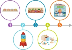 Koka komplekts, kas paredzēts kognitīvās attīstības un smalkās motorikas veicināšanai bērniem no 16 mēnešu vecuma.
