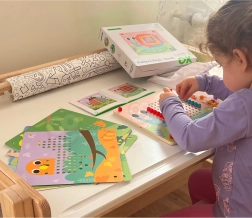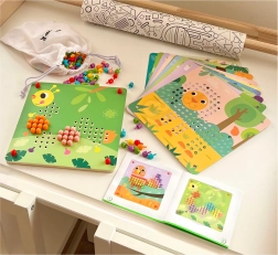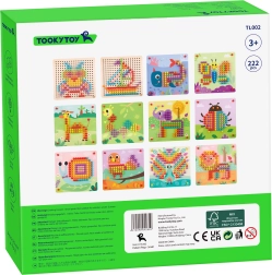 Šī aizraujošā mozaīka ir paredzēta bērniem no 3 gadu vecuma un satur 10 šablonu plāksnes un 222 krāsainas tapas. Iekļauts arī auduma maisiņš visu detaļu glabāšanai.