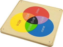 Šī izglītojošā tāfele palīdz bērniem saprast, kā no pamatkrāsām var radīt jaunus krāsu toņus. Bērni var eksperimentēt ar krāsu kombinācijām un atklāt jaunus toņus. Spoguļvirsmas ļauj bērniem redzēt savu atspulgu dažādās krāsās, kas ir gan aizraujoši, gan vizuāli stimulējoši.