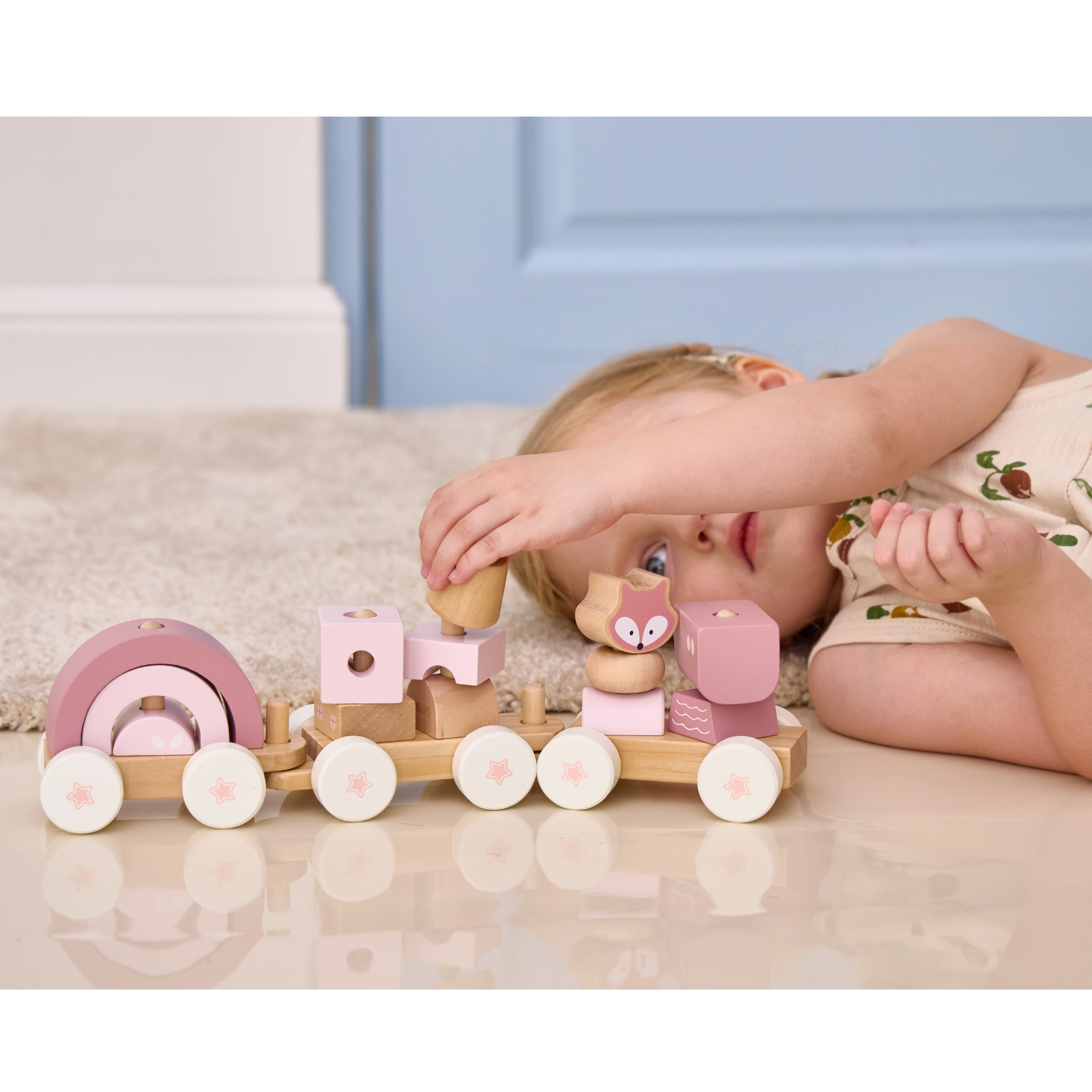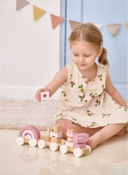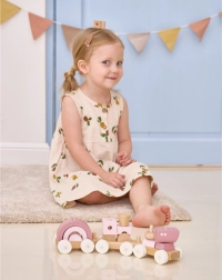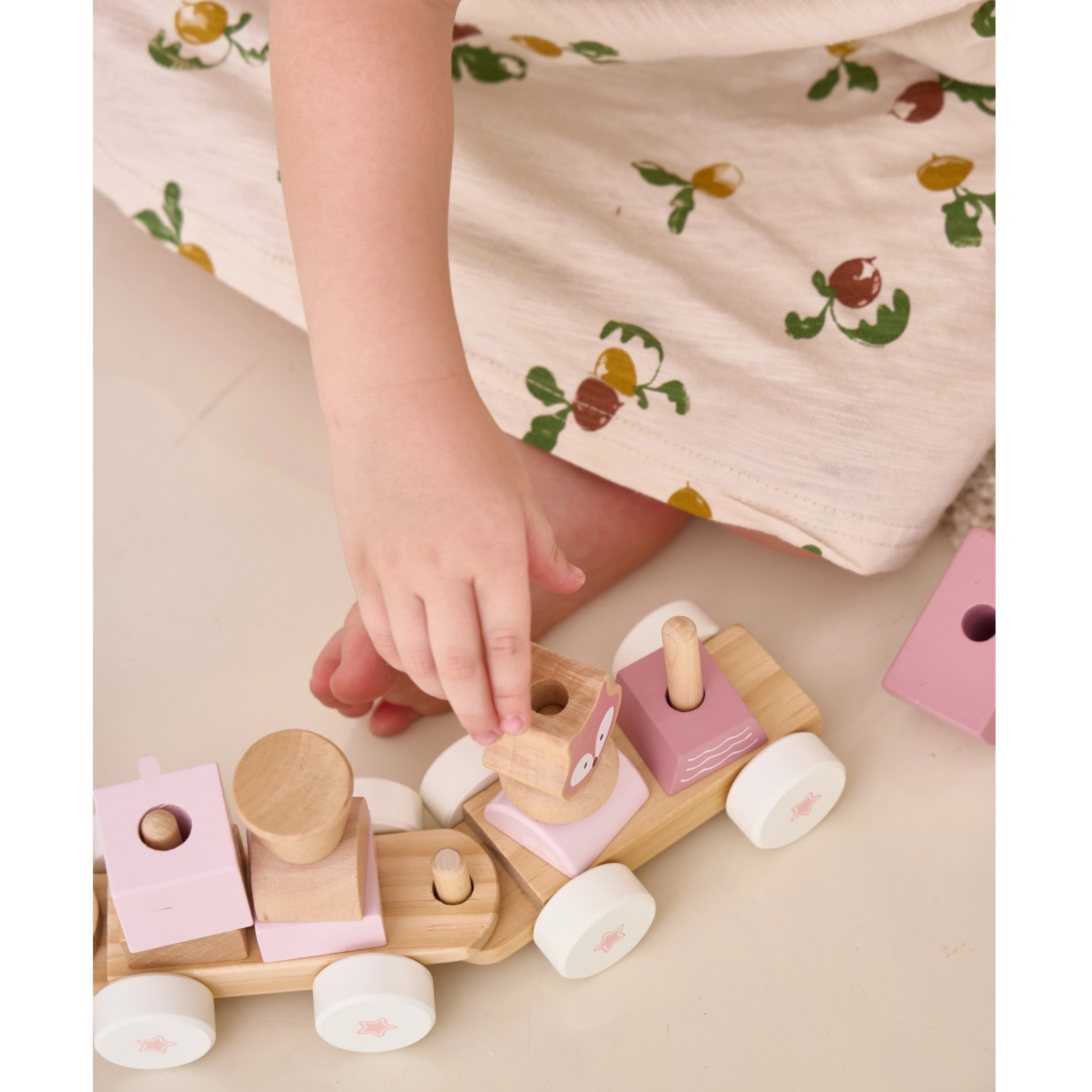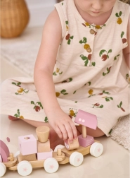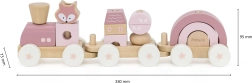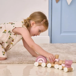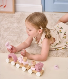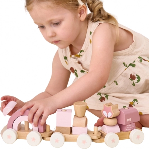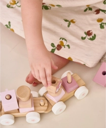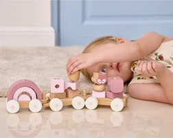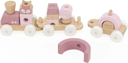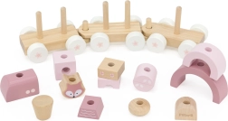 Mīlīgais rozā koka vilciens no PolarB sērijas ar zīmolu Viga iepriecinās ikvienu bērnu. Tas sastāv no 3 vagoniem un 14 klucīšiem dažādās formās, kurus var brīvi kombinēt un salikt. Pateicoties maigajām pasteļkrāsām, drošajam koka izpildījumam un patīkamajām formām, tas ir ideāli piemērots sīkās motorikas, koordinācijas un radošuma attīstīšanai jau no 18 mēnešu vecuma.