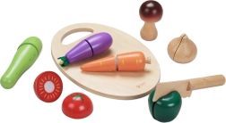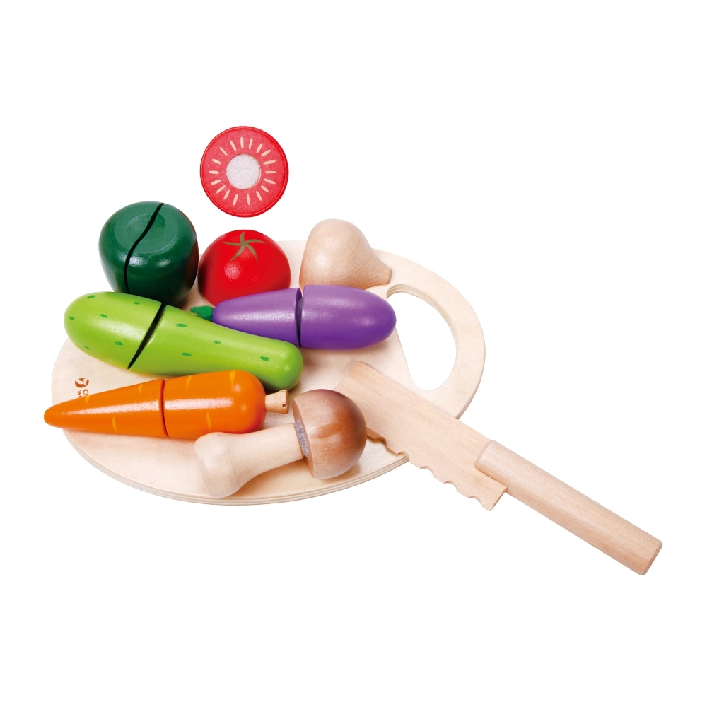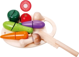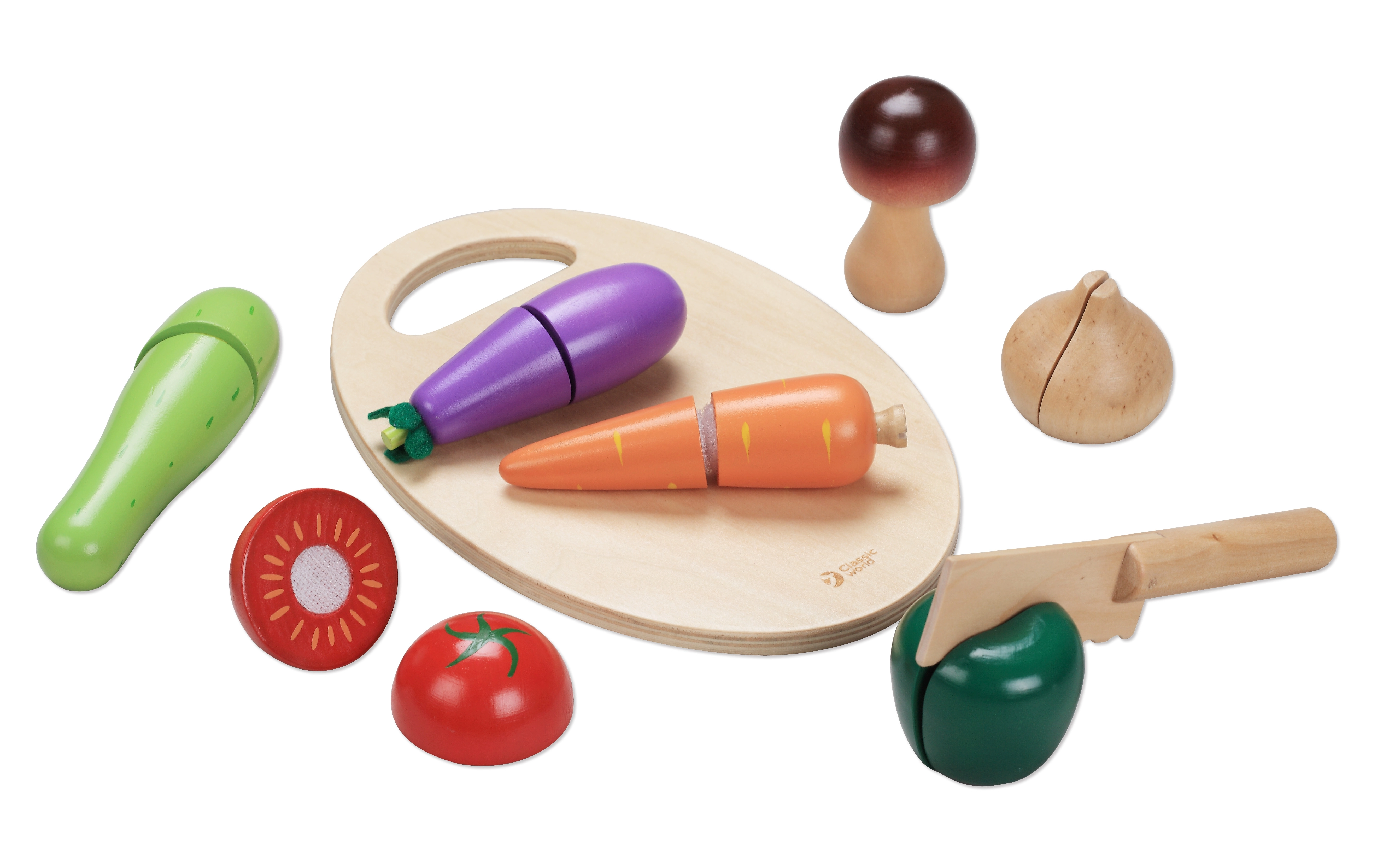 Šis CLASSIC WORLD koka dārzeņu griešanas komplekts ir ideāls mazajiem pavāriem, kuri labprāt atdarina pieaugušo pasauli. Dārzeņu daļas savienotas ar līplenti, tāpēc bērni tās var “sagriezt” ar koka nazīti un atkal savienot – jautri, droši un izglītojoši.