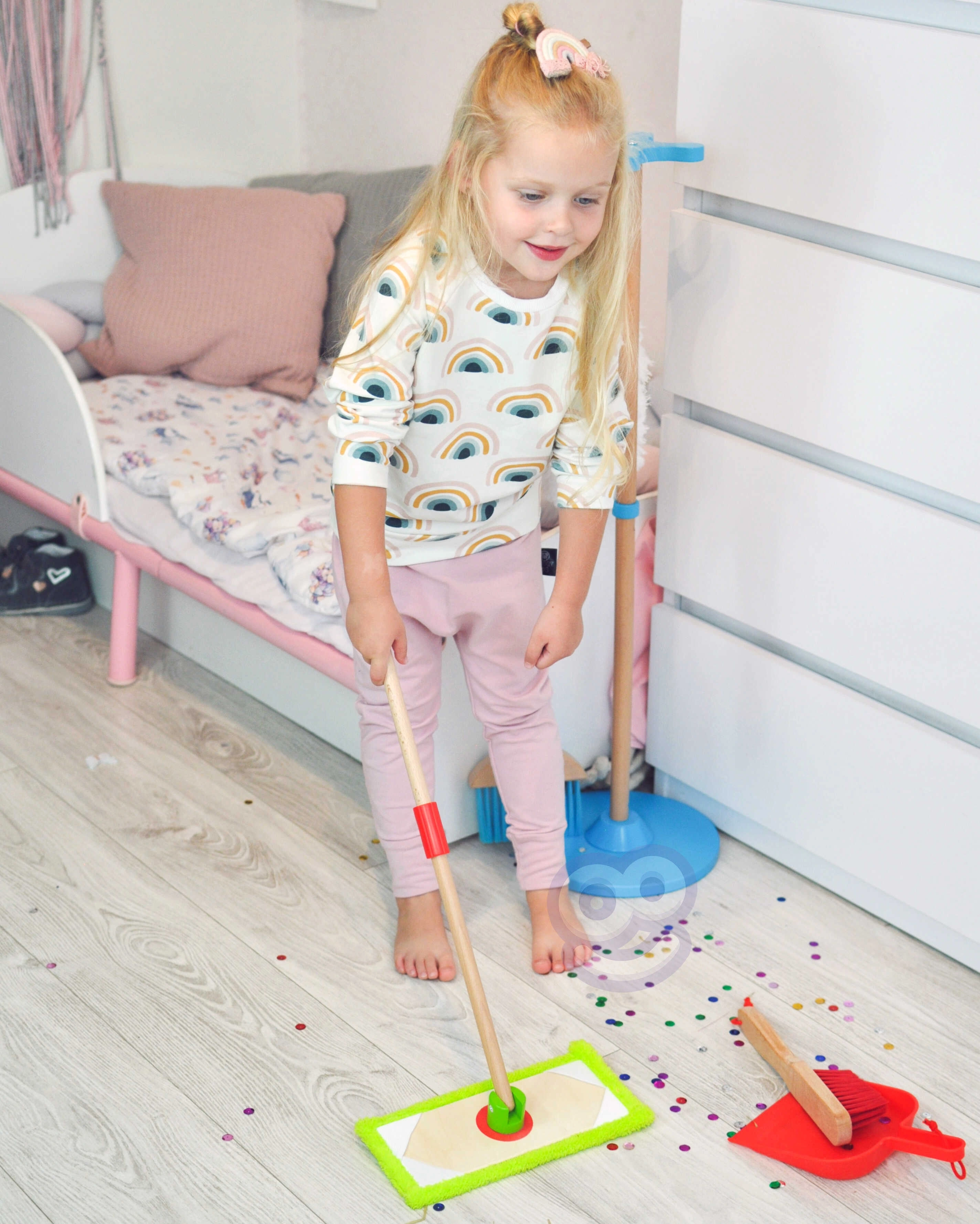 Ar uzkopšanas komplektu bērni iemācās rūpēties par kārtību un tīrību savā istabā, tāpat kā pieaugušie.