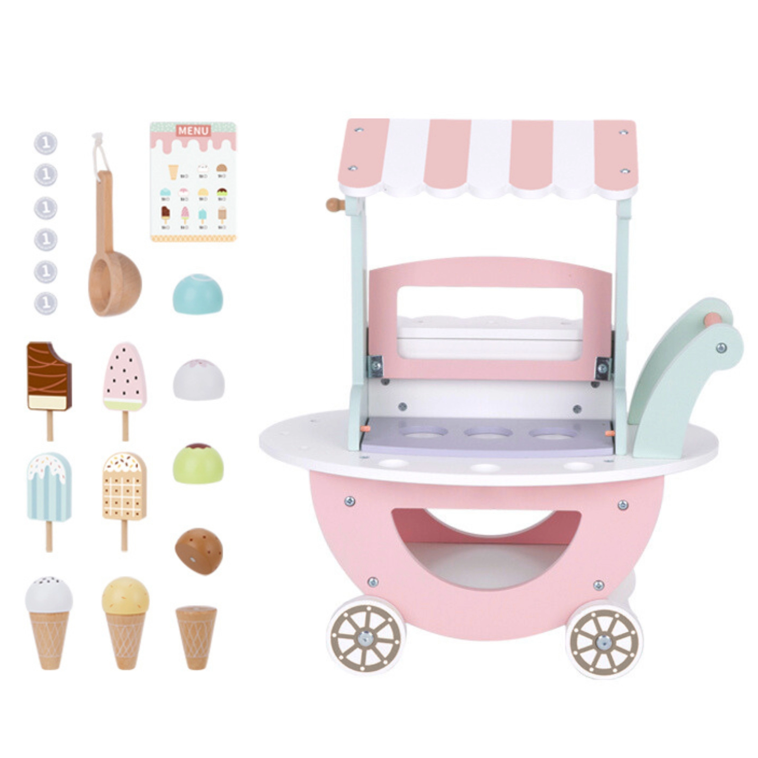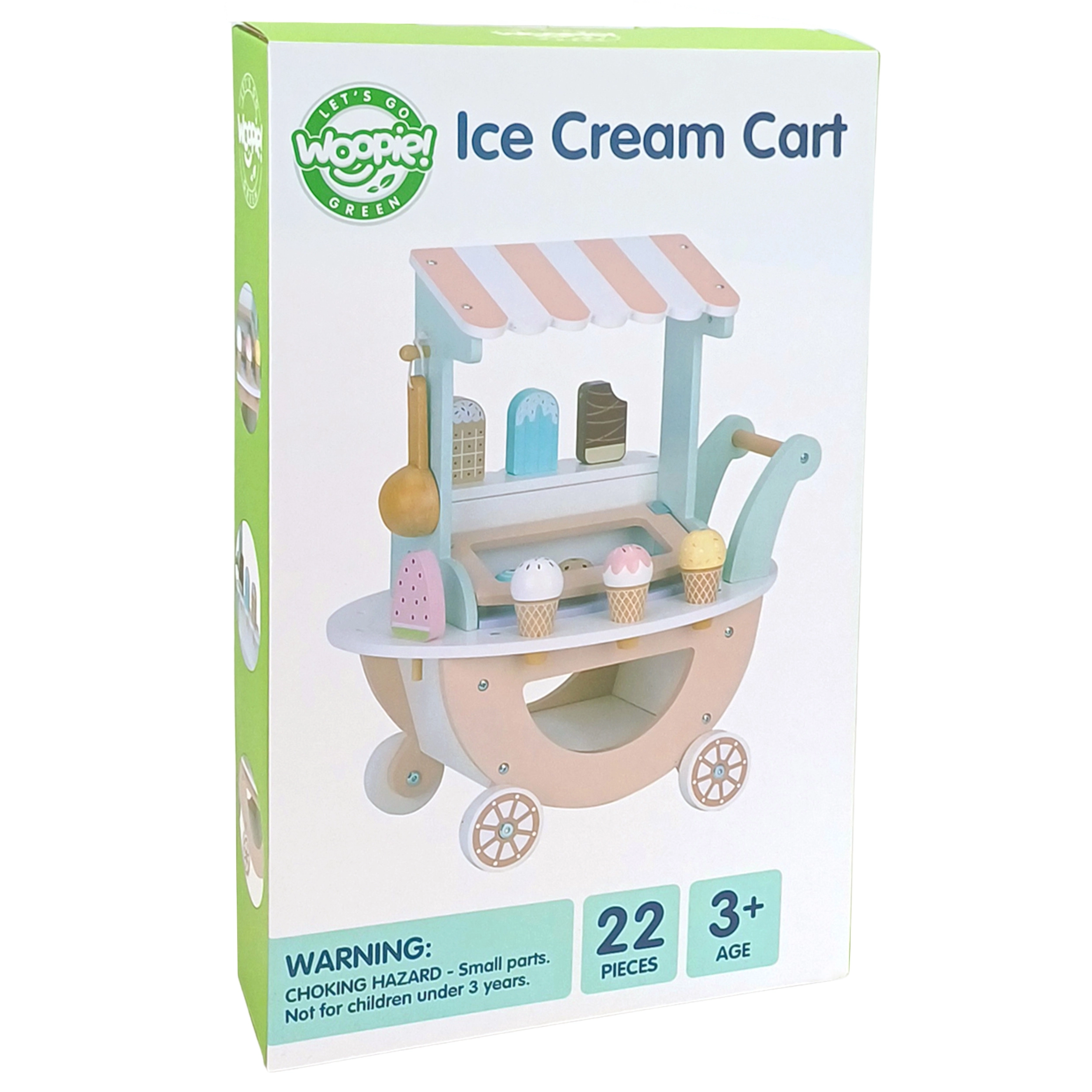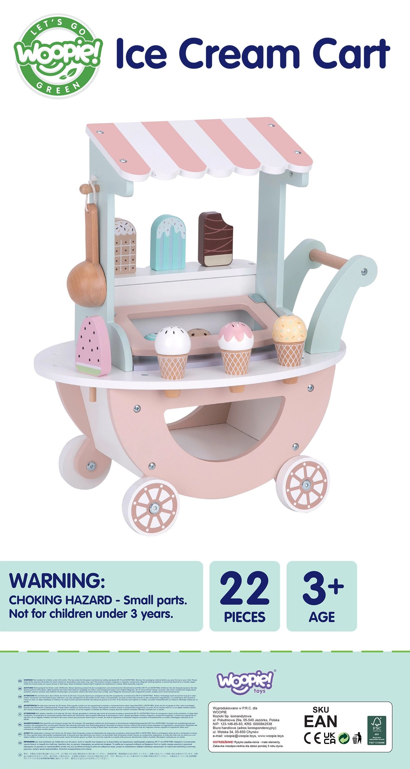 Piedāvājam koka saldējuma ratiņus Woopie Green – ideālu rīku jūsu bērnu radošai un aizraujošai spēlei! Šie skaistie ratiņi ir aprīkoti ar 27 dažādiem piederumiem, kas veicina iztēli un lomu spēles.