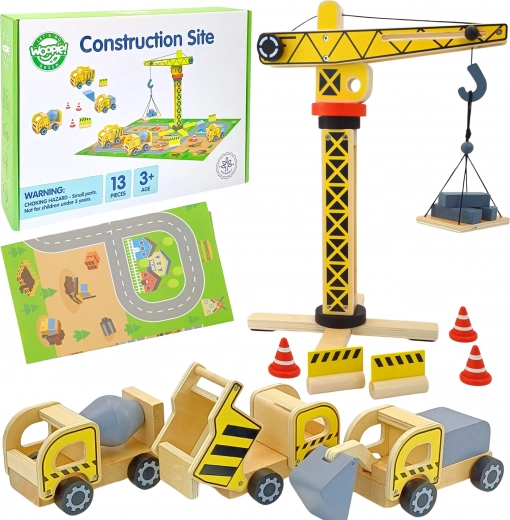Paplašinātais WOOPIE GREEN celtniecības komplekts ir paredzēts mazajiem būvētājiem. Šajā komplektā ir liels koka celtnis, trīs celtniecības transportlīdzekļi un citi piederumi realistiskām būvspēlēm.