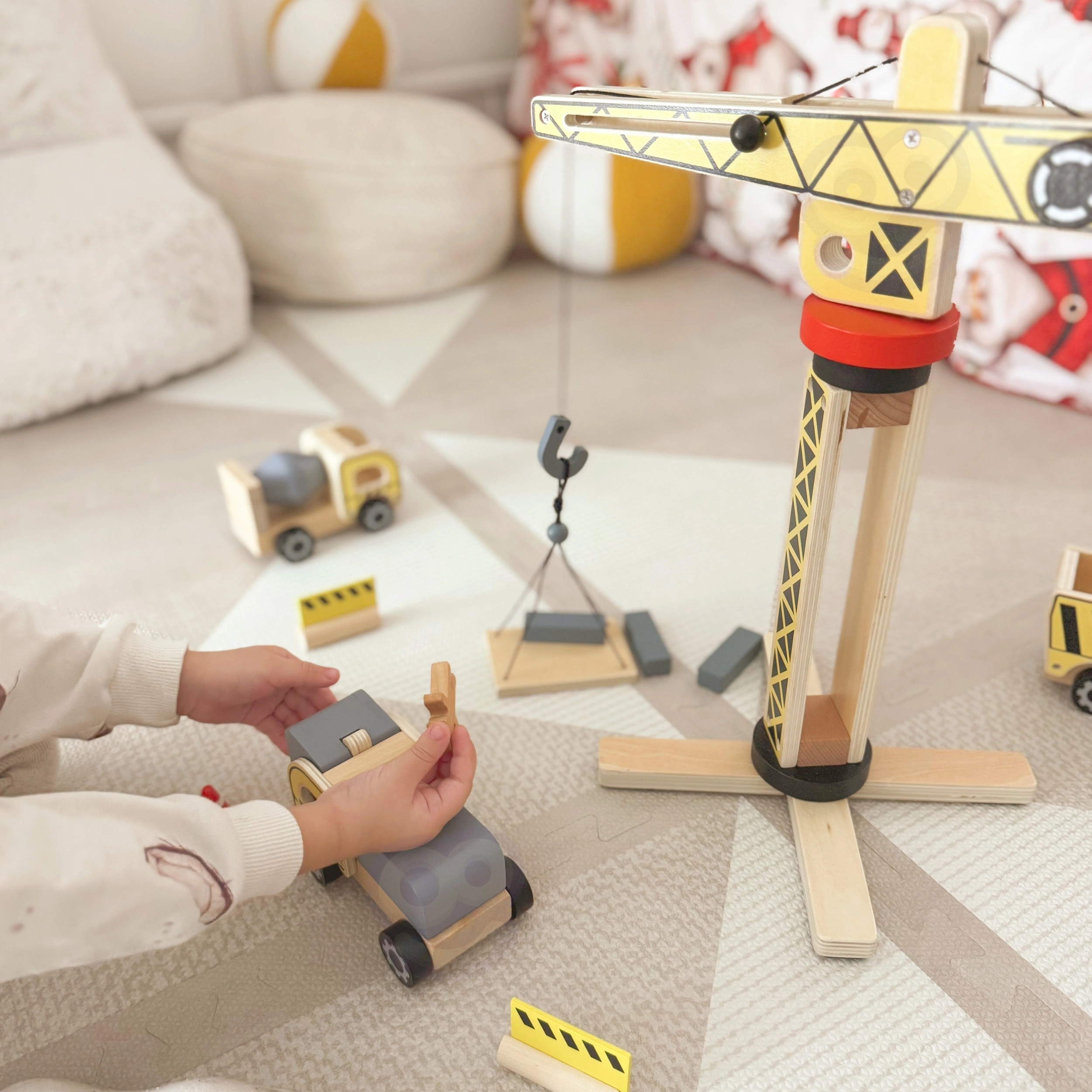 Atklājiet būvēšanas prieku ar WOOPIE GREEN koka celtniecības komplektu 5-in-1. Šis komplekts ļauj bērniem iejusties mazā inženiera lomā. Celtnis, celtniecības transportlīdzekļi un ilustrētā paliktnīte piedāvā neskaitāmus spēļu scenārijus, attīsta motoriskās iemaņas un rosina radošumu.