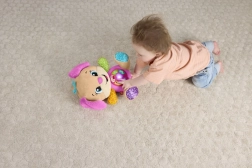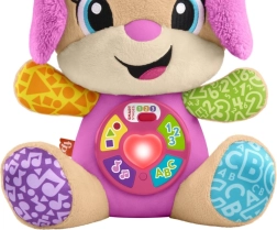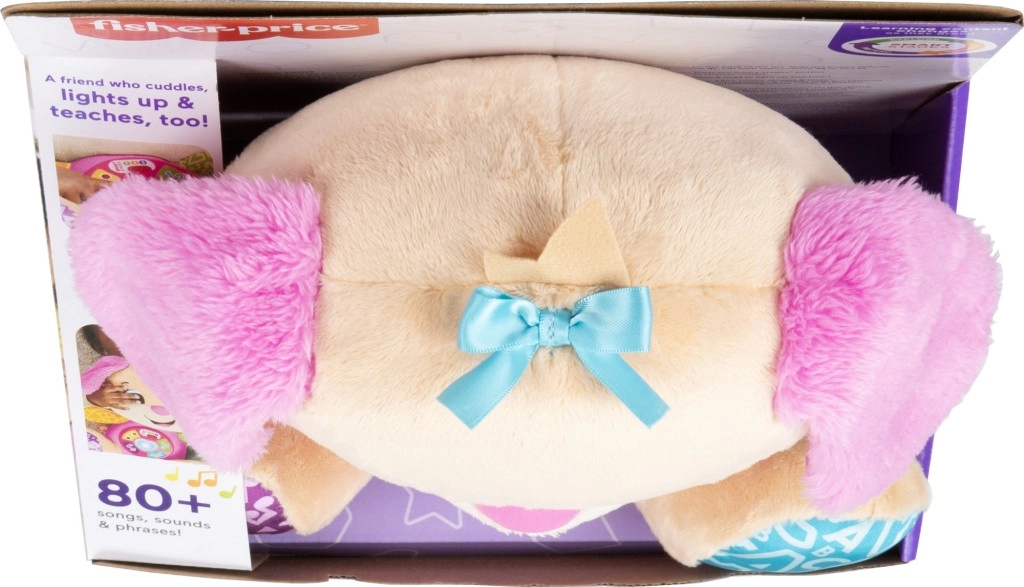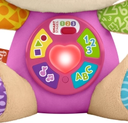 FISHER-PRICE Laugh & Learn Smart Stages Māsiņa ir gan mīksts mīļdraugs, gan gudra interaktīva rotaļlieta vienā. Bērni no 6 līdz 36 mēnešiem iepazīst pirmās prasmes ar dziesmiņu, gaismiņu un taustes elementu palīdzību. Nospiežot pogas uz vēderiņa, iedegas sirsniņa un atskan dziesmiņas, skaitļi vai krāsas – mācīšanās ir dabiska un prieka pilna.