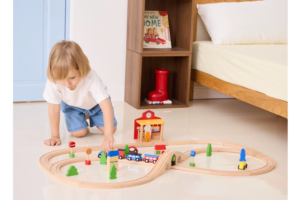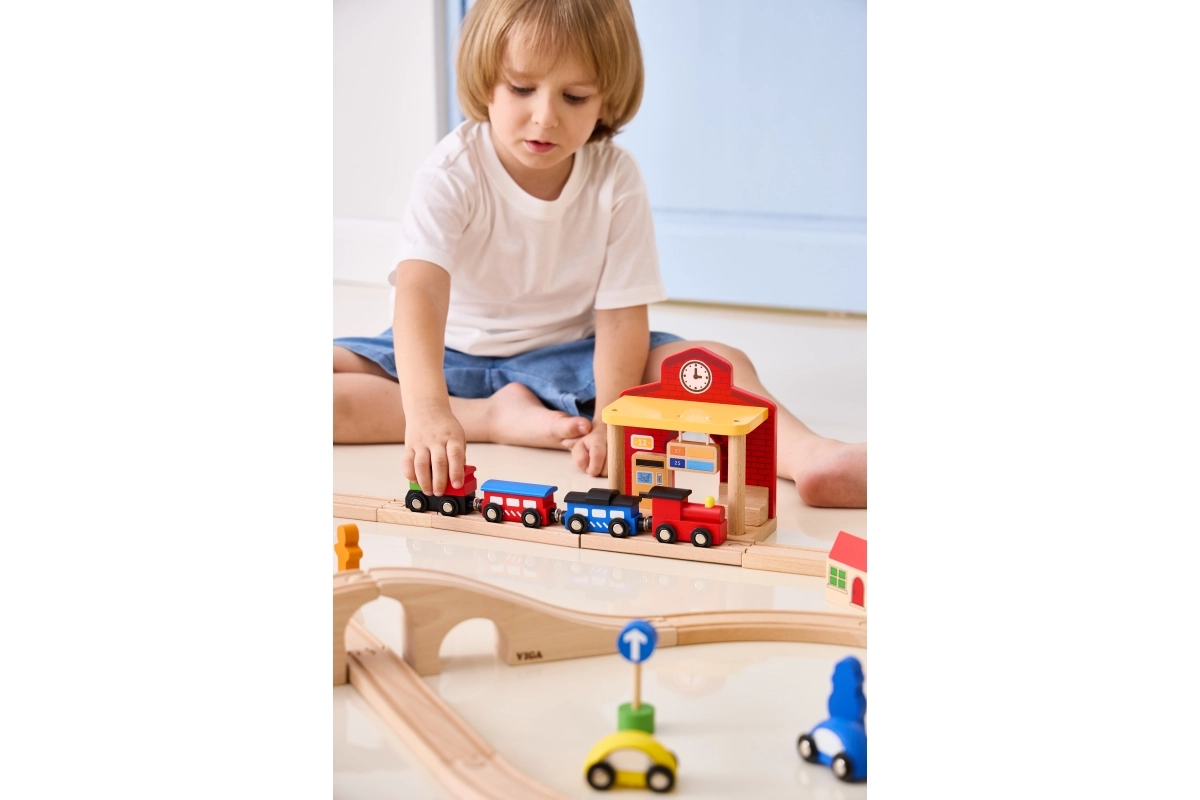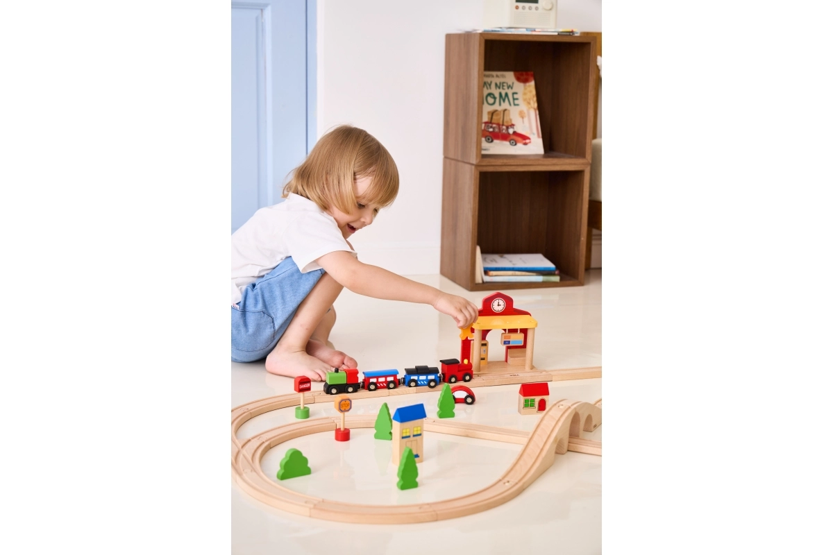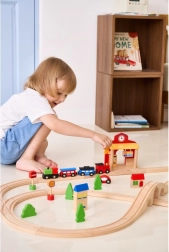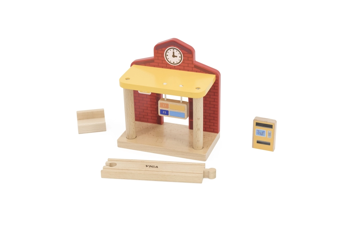 Stacija ir ideāla bērnu ainiņām – no biļešu pārdošanas līdz vilcienu pienākšanai un atiešanai. Izmēri ir pielāgoti, lai viegli ietilptu uz vairuma spēļu virsmu un būtu saderīgi ar standarta koka sliedēm. Spēle attīsta sīko motoriku, roku–acu koordināciju un sociālās prasmes.