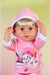 Mīlīgs rozā sporta tērps BABY born lellēm 43 cm nodrošina gan komfortu, gan stilu. Komplektā ir mīksts džemperis ar kapuci un sunīša apdruku, kā arī saskaņotas rakstainas bikses. Pateicoties elastīgajām aprocēm un vieglai uzvilkšanai, tas ir ideāli piemērots ikdienas rotaļām, attīstot iztēli un aprūpes prasmes.