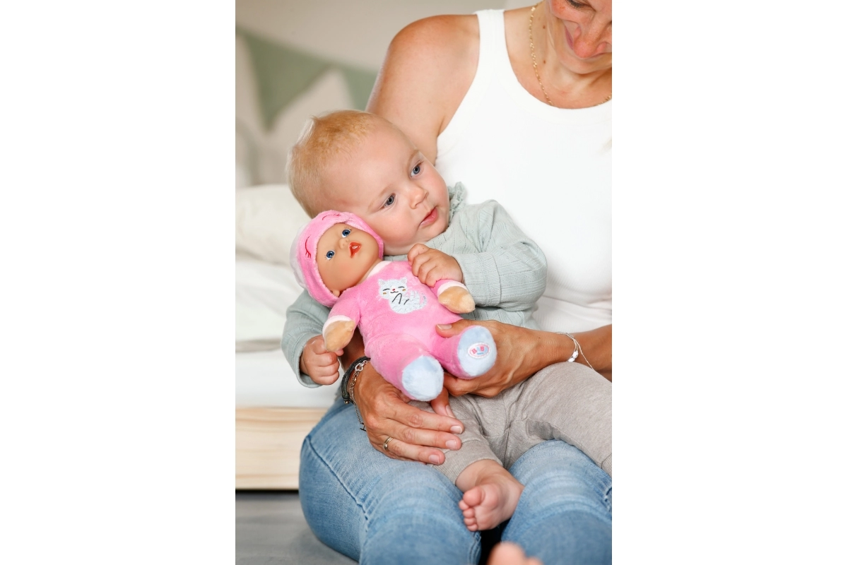 Rozā kombinezonu rotā izšuvums ar mīļu dzīvnieciņu, bet saskaņotā cepurīte – ar ziedu apdruku. Lelli ir viegli turēt mazām rociņām, tā ir ideāla ratiņos, gultiņā un līdzi ceļā. Praktiskā kopšana iepriecinās vecākus – rotaļlietu var vienkārši mazgāt ar rokām 30 °C temperatūrā.