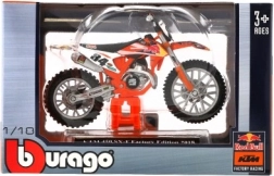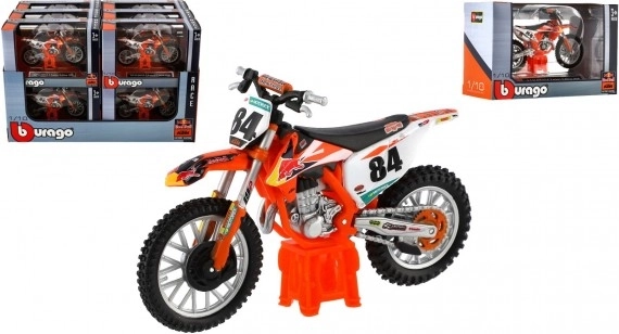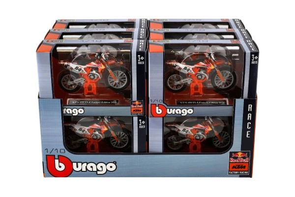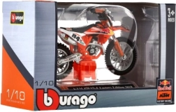 Motociklu entuziastiem un kolekcionāriem zīmols Bburago piedāvā detalizētu motocikla KTM 450 SX-F Factory Edition 2018 modeli mērogā 1:18. Šis modelis ir ideāls gan rotaļām, gan izvietošanai kolekcijā.